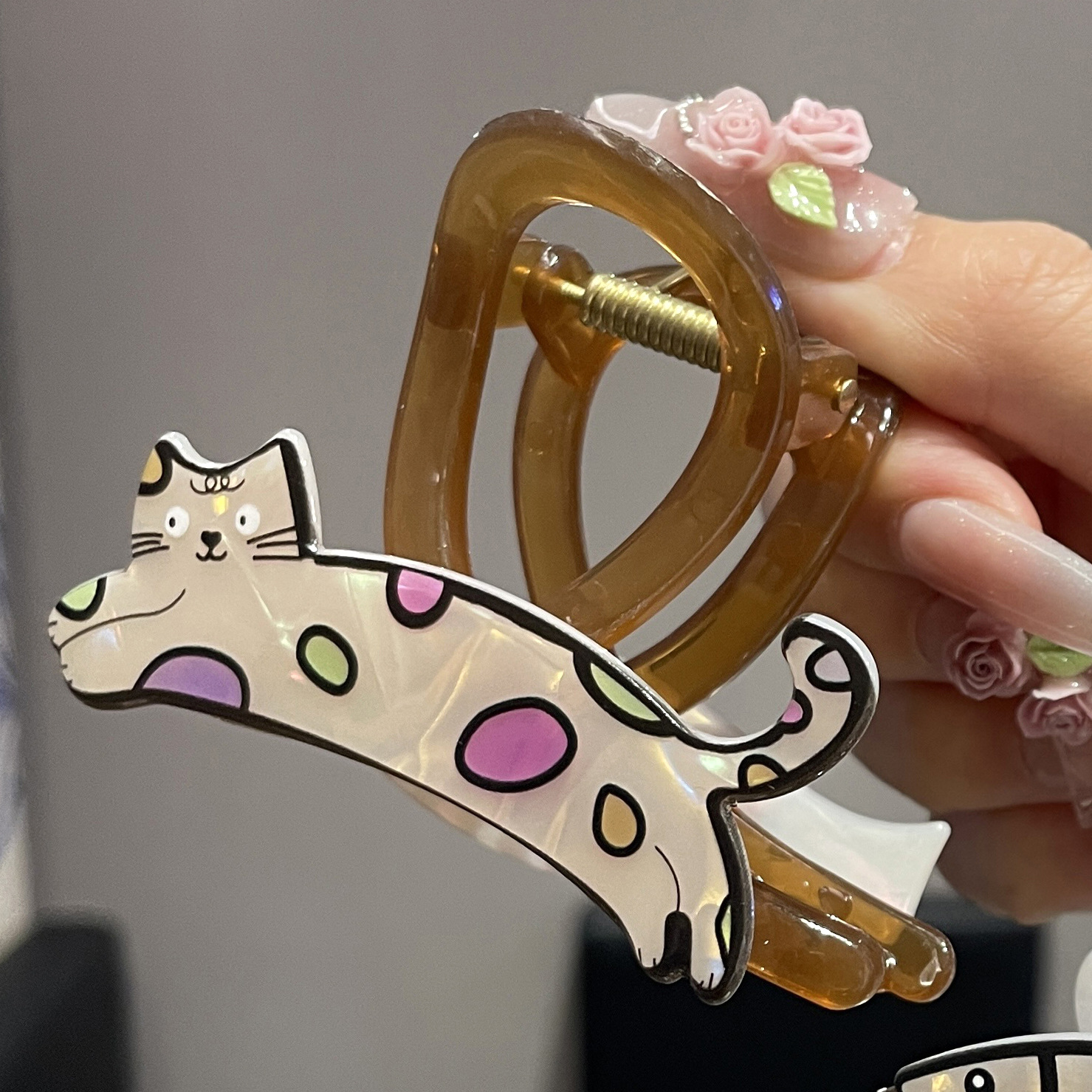 2024 새로운 진한 베이지 고양이 클립 한국 헤어 액세서리 달콤한 올 매치 헤어 클립 다시 머리 상어 클립 중간 여성