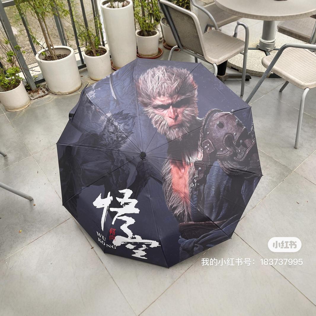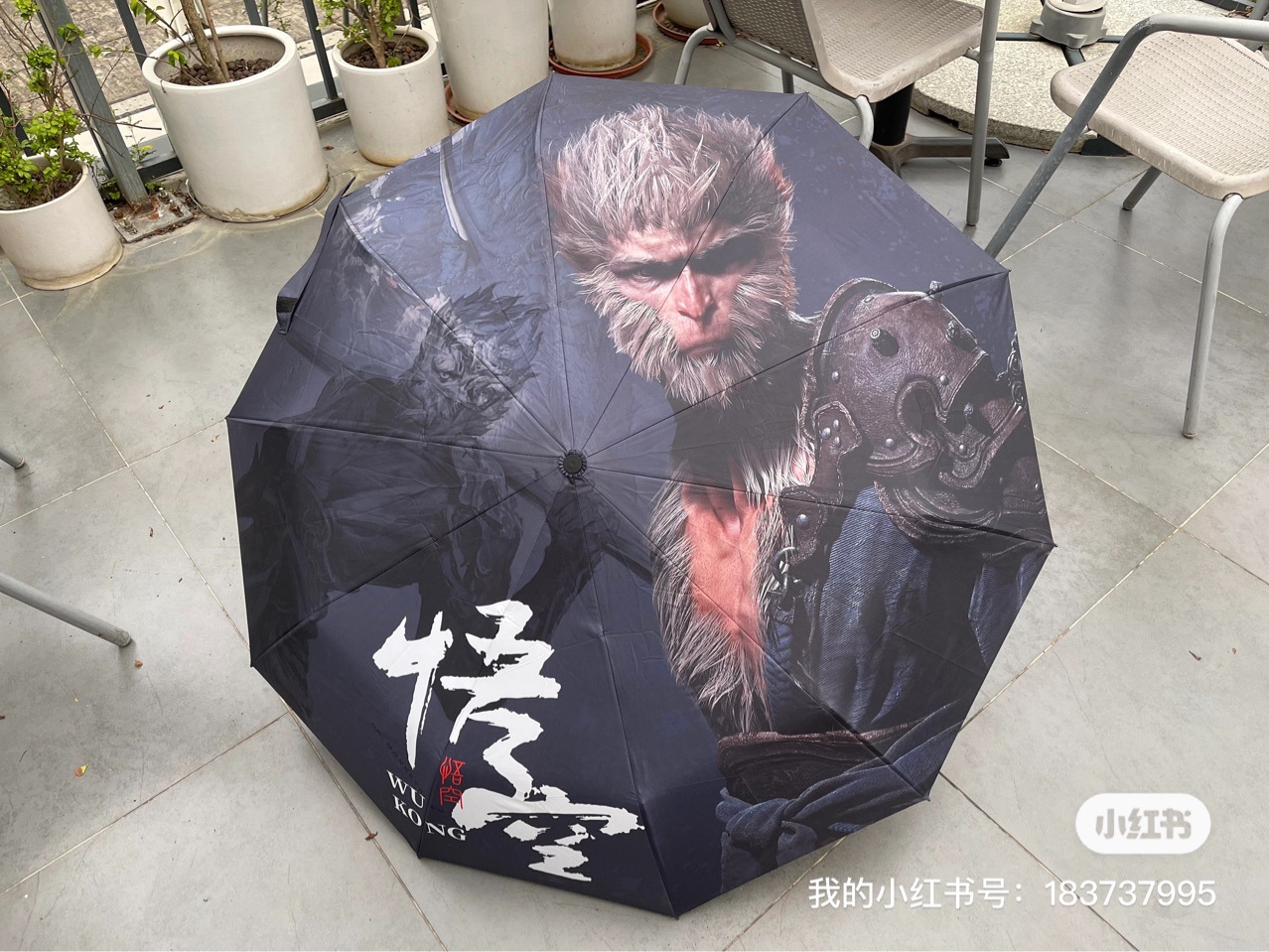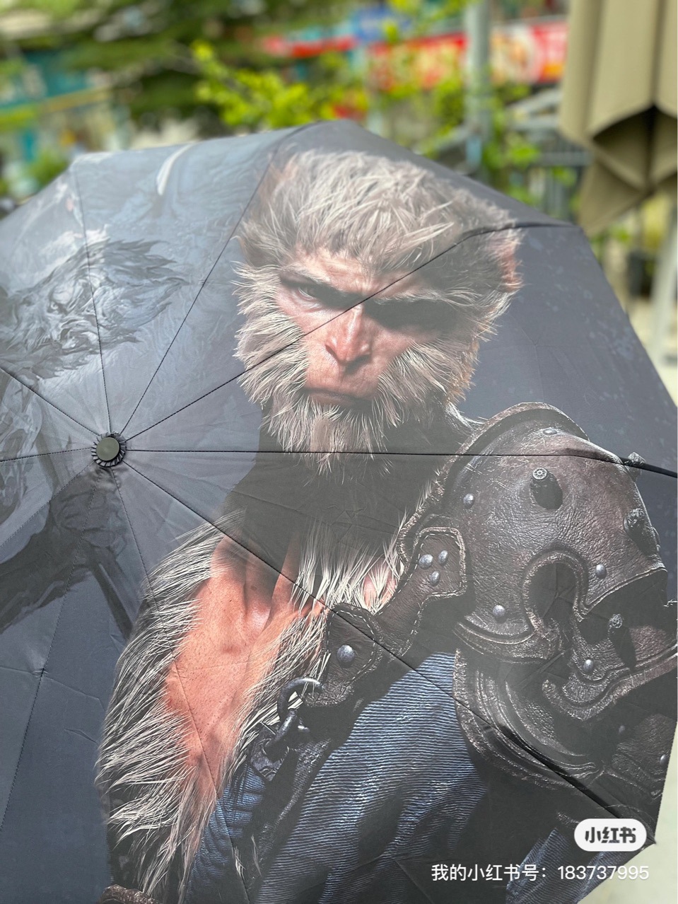 검은 신화 우콩 검은 고무 접는 우산 선 스크린 UV 태양 우산 애니메이션 양산 디지털 인쇄 도매스토어 가기