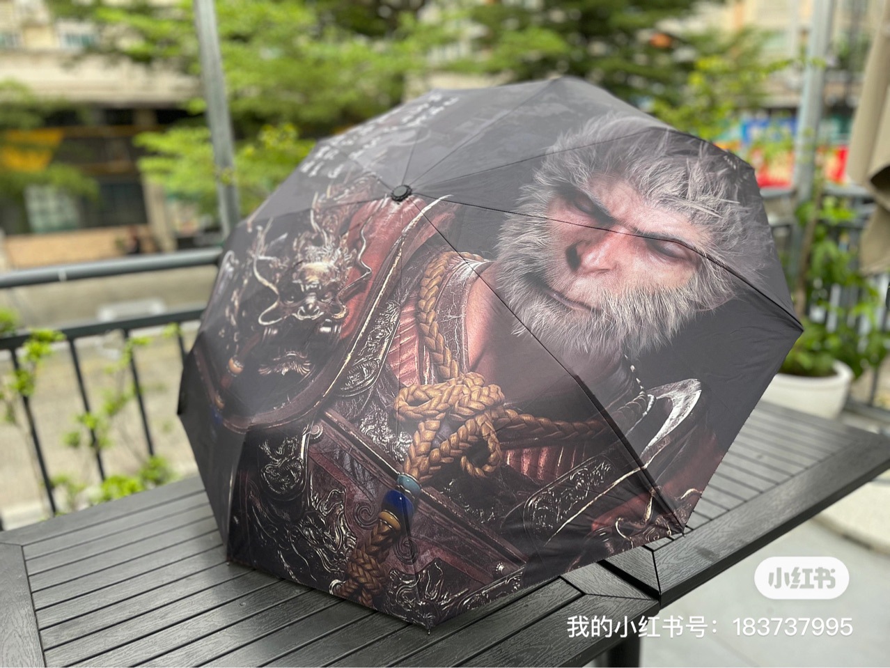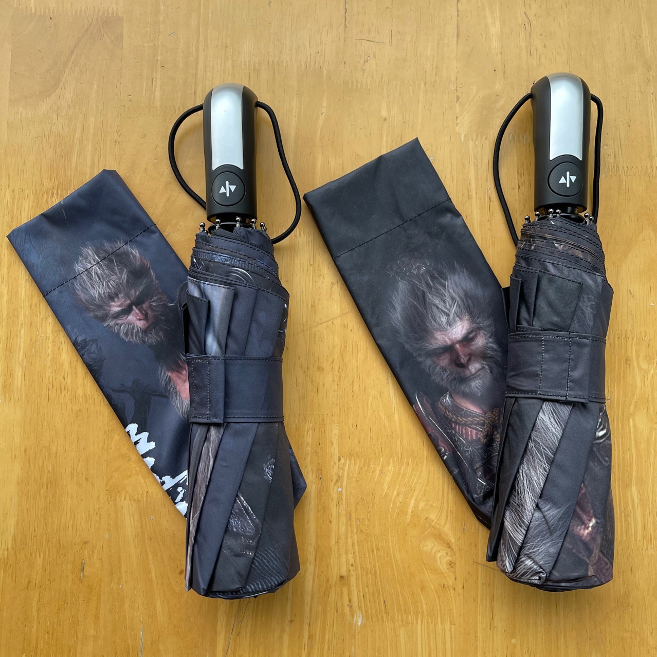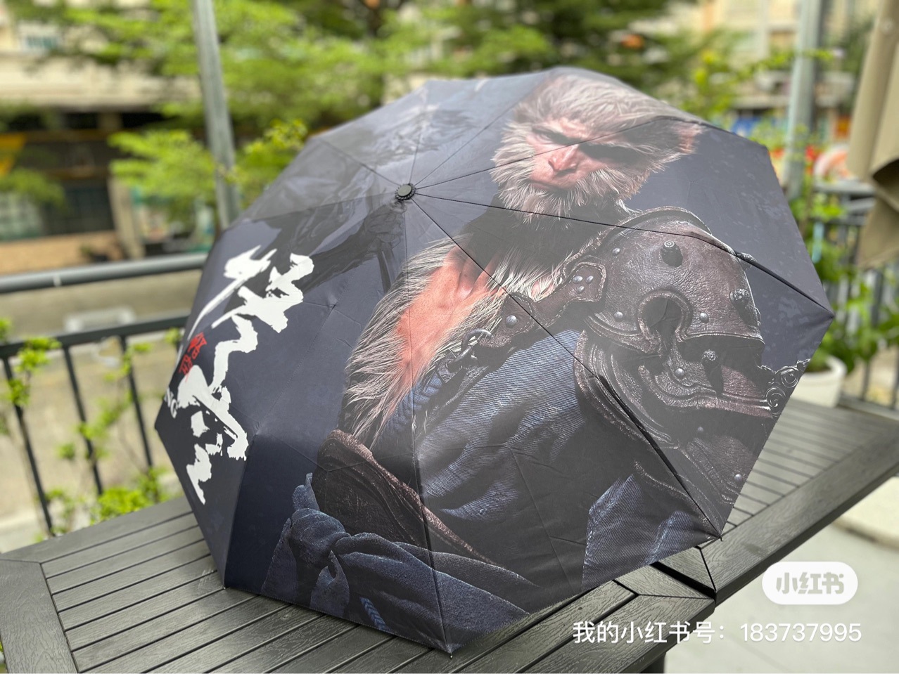 검은 신화 우콩 검은 고무 접는 우산 선 스크린 UV 태양 우산 애니메이션 양산 디지털 인쇄 도매