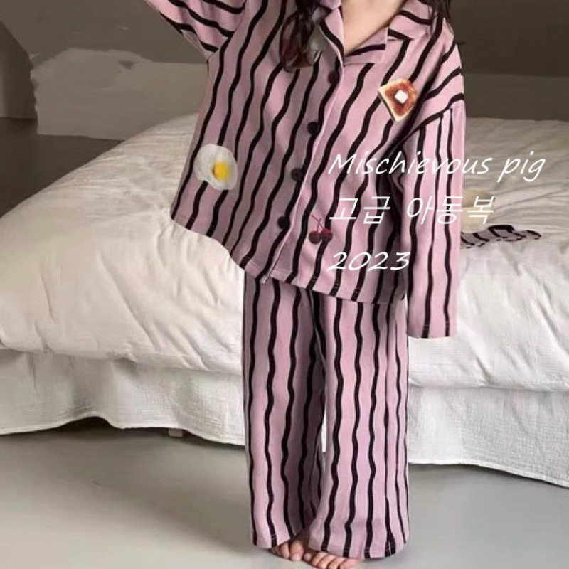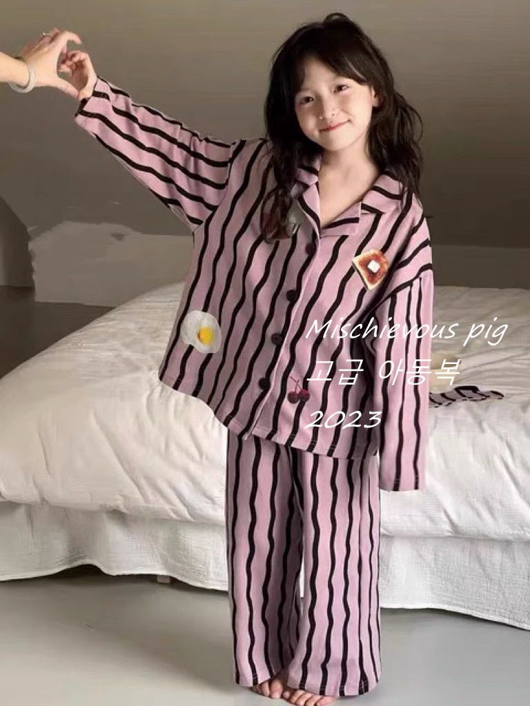 한국 아동복 어린이 가정 의류 2024 가을과 겨울 새로운 포르노 보라 소년 소녀 잠옷스토어 가기