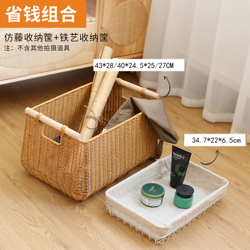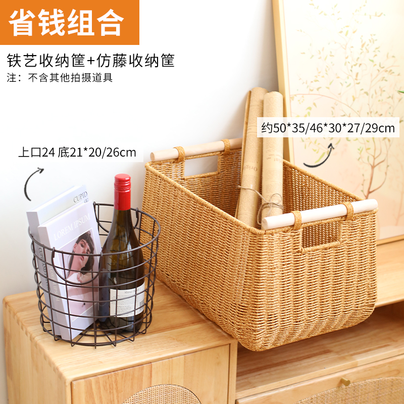 뚜껑 등나무 색조 상자 서랍 옷 장난감 저장 상자 짠 옷 저장 바구니 가정용 큰 크기