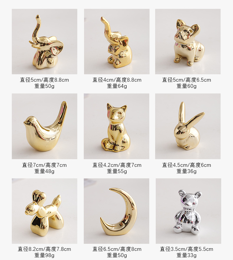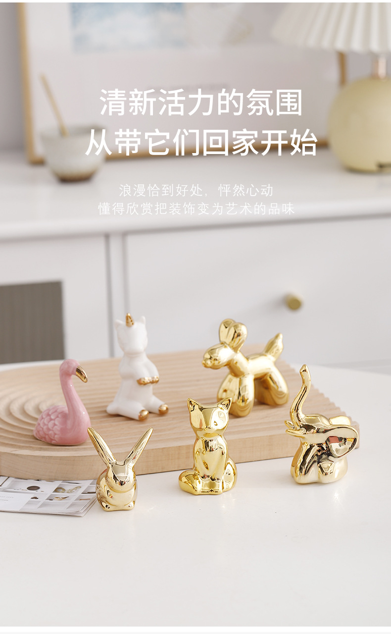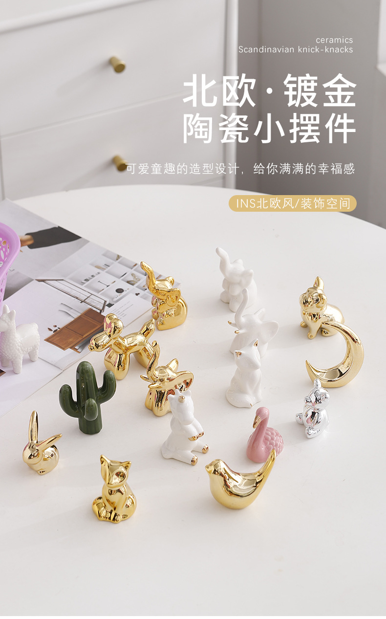 북유럽풍 세라믹 크리에이티브 도금 동물 장식품 미니 데스크탑 장식품 공장 직판