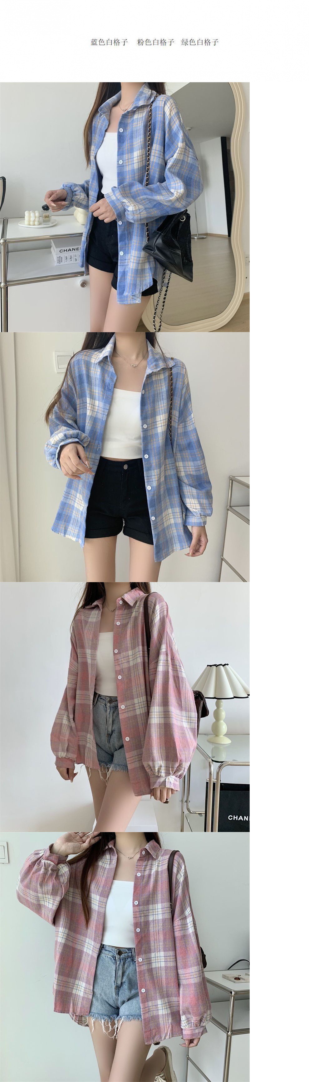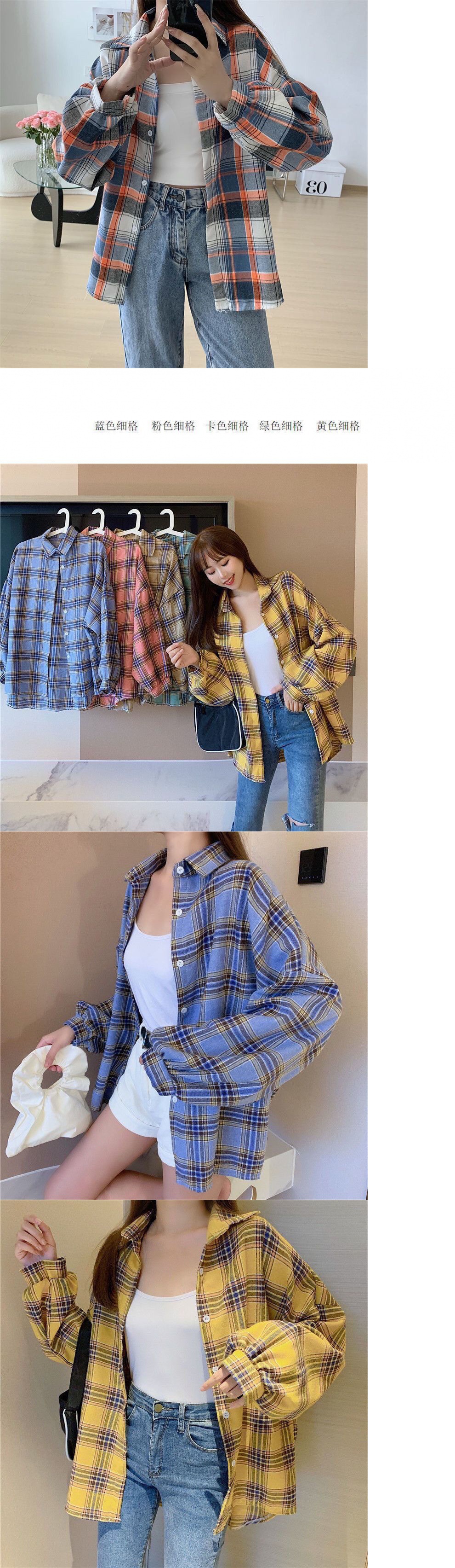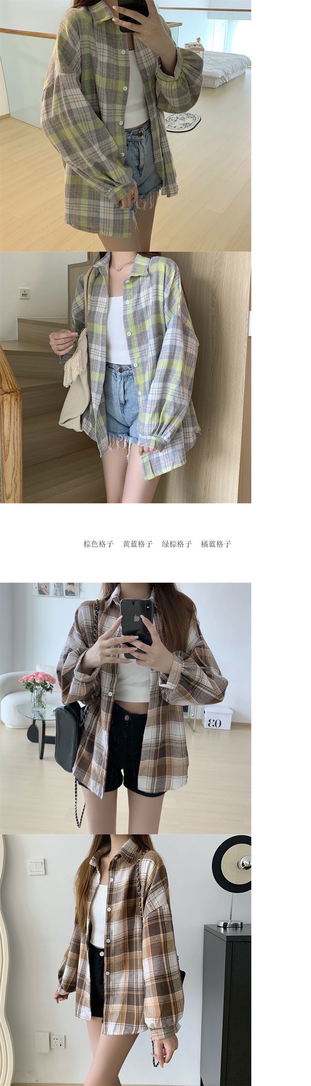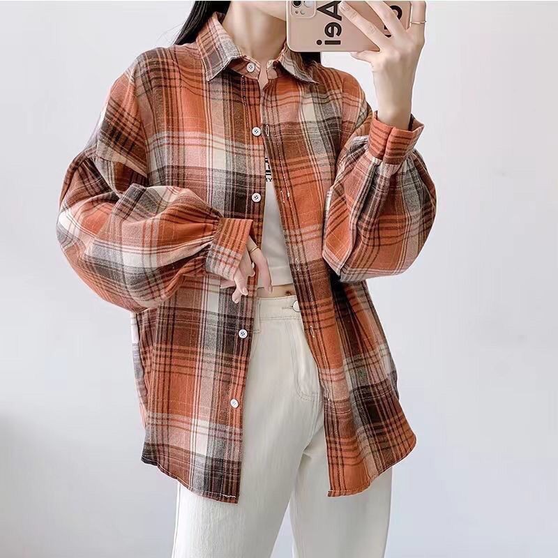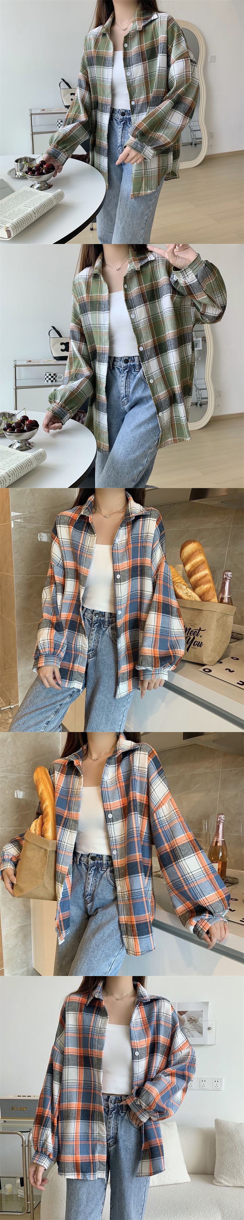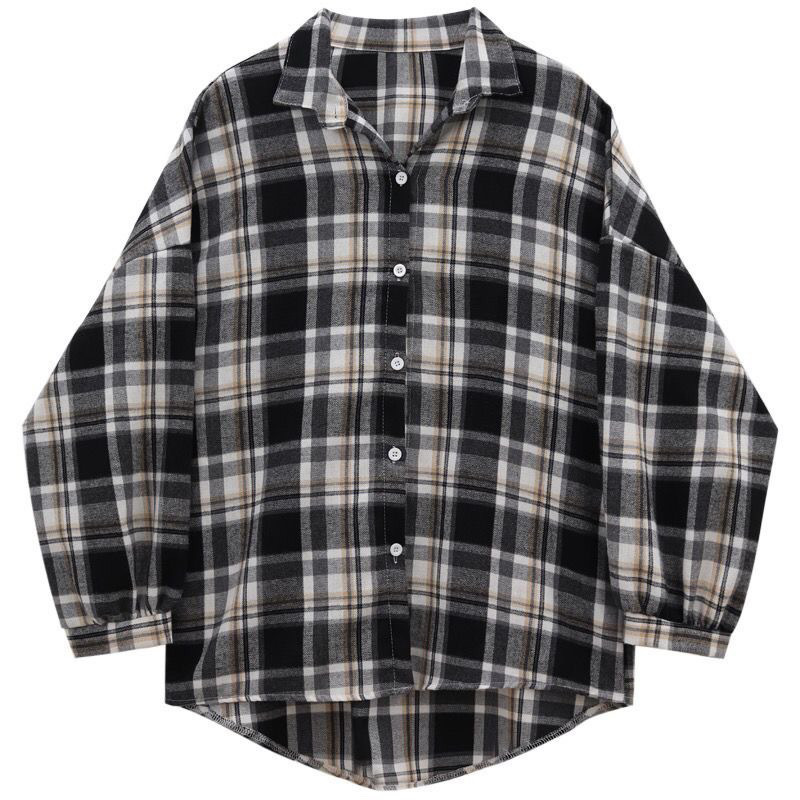[재고] 레트로 느슨한 한국 격자 무늬 셔츠 여성 셔츠 홍콩 맛 새로운 2024 봄과 가을 긴 소매 디자인 감각