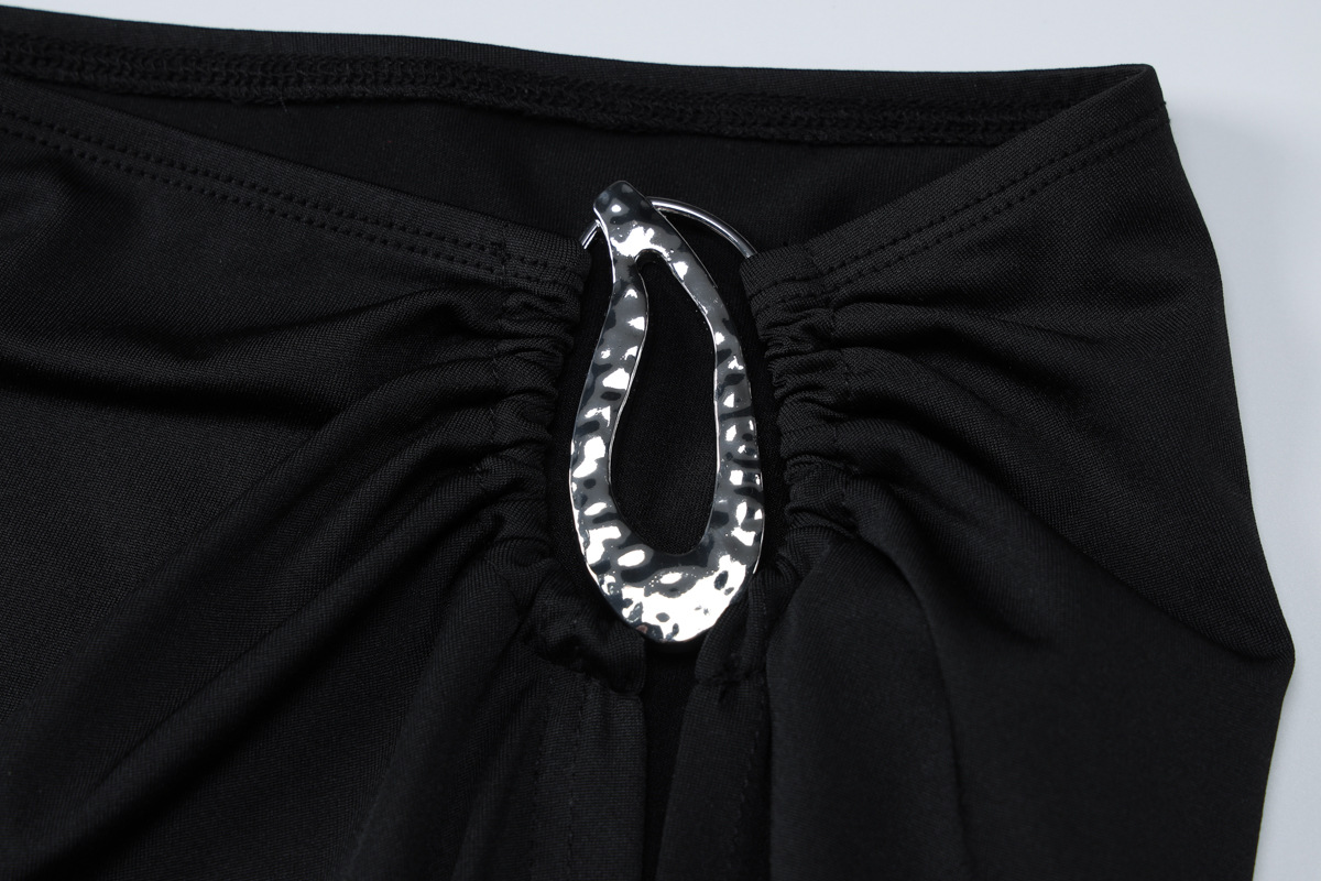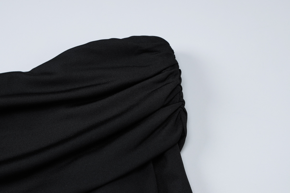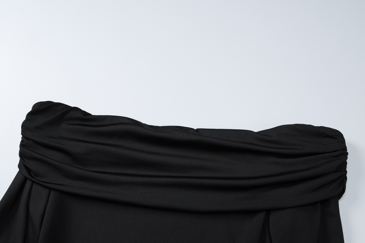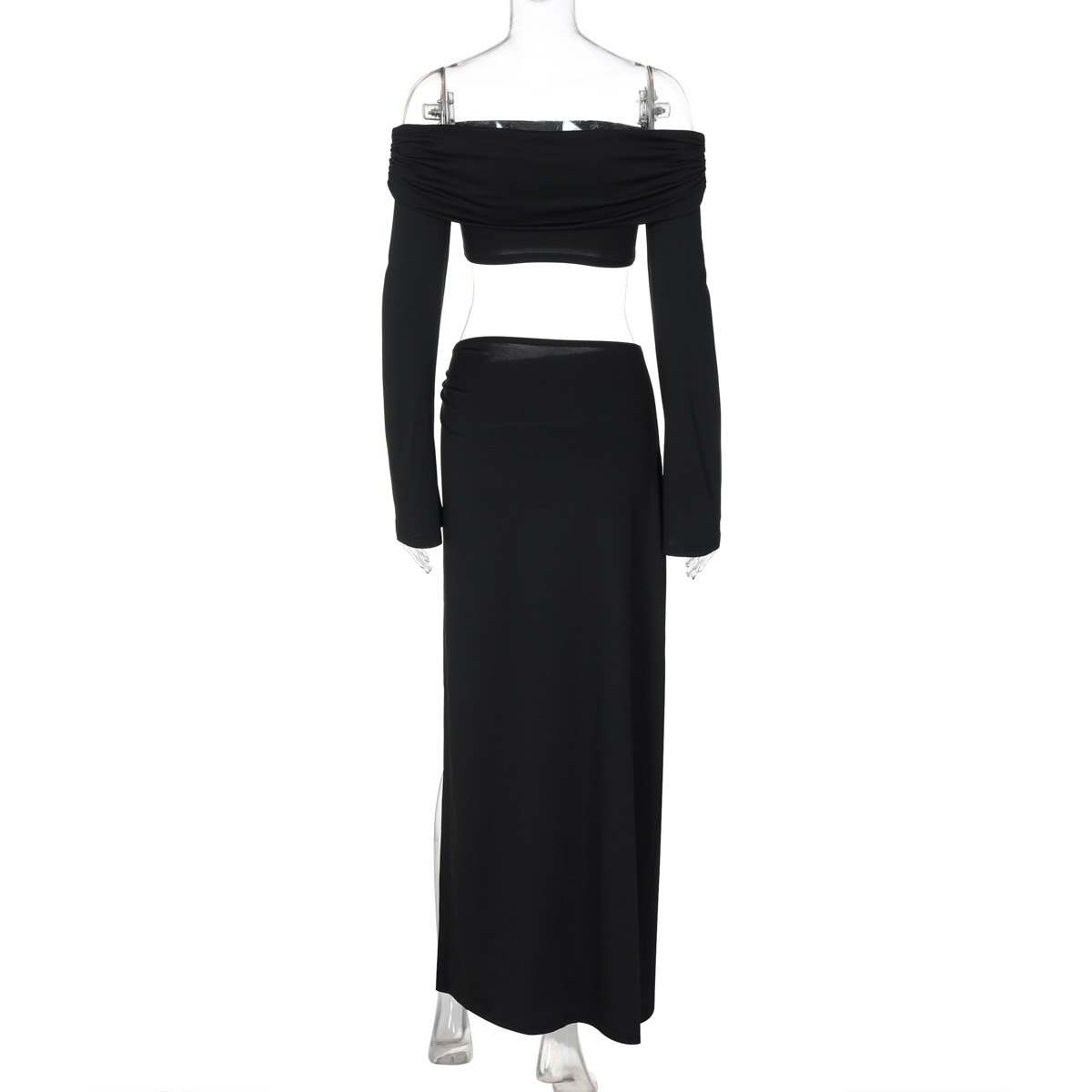 유럽과 미국의 여성복 2025 봄 신작 원라인 칼라 긴팔 가슴 감싸는 섹시한 하이 슬릿 스커트 여성용 투피스 슈트