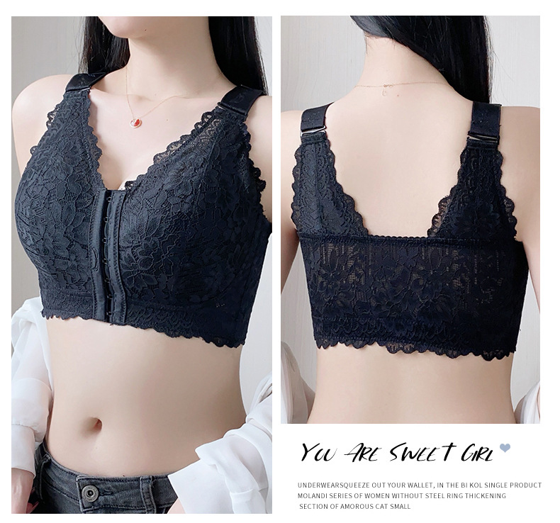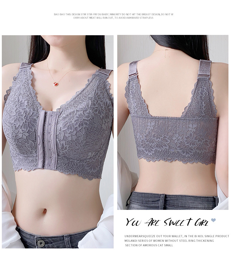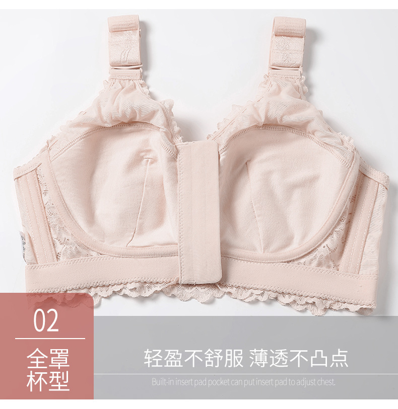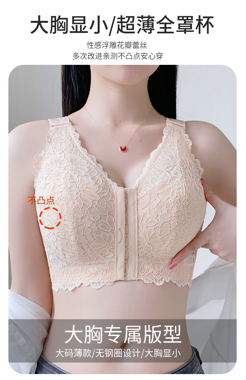 앞 버클 울트라 얇은 대형 가슴 작은 속옷 비 스폰지 플러스 사이즈 조정 가능한 섹시한 레이스 아름다운 뒤 테두리가없는 브래지어