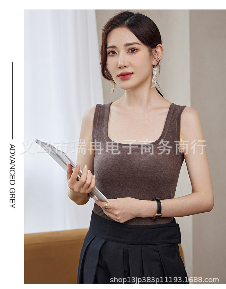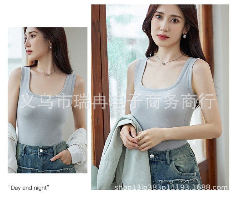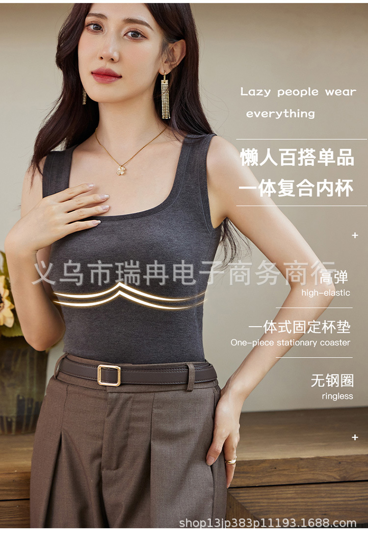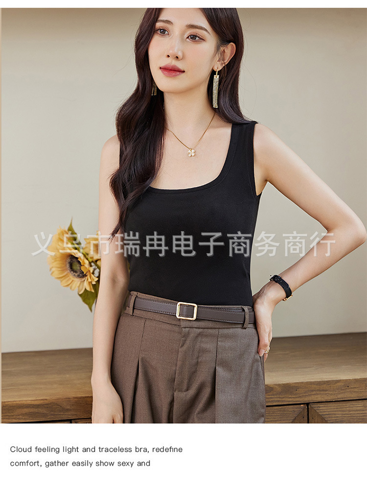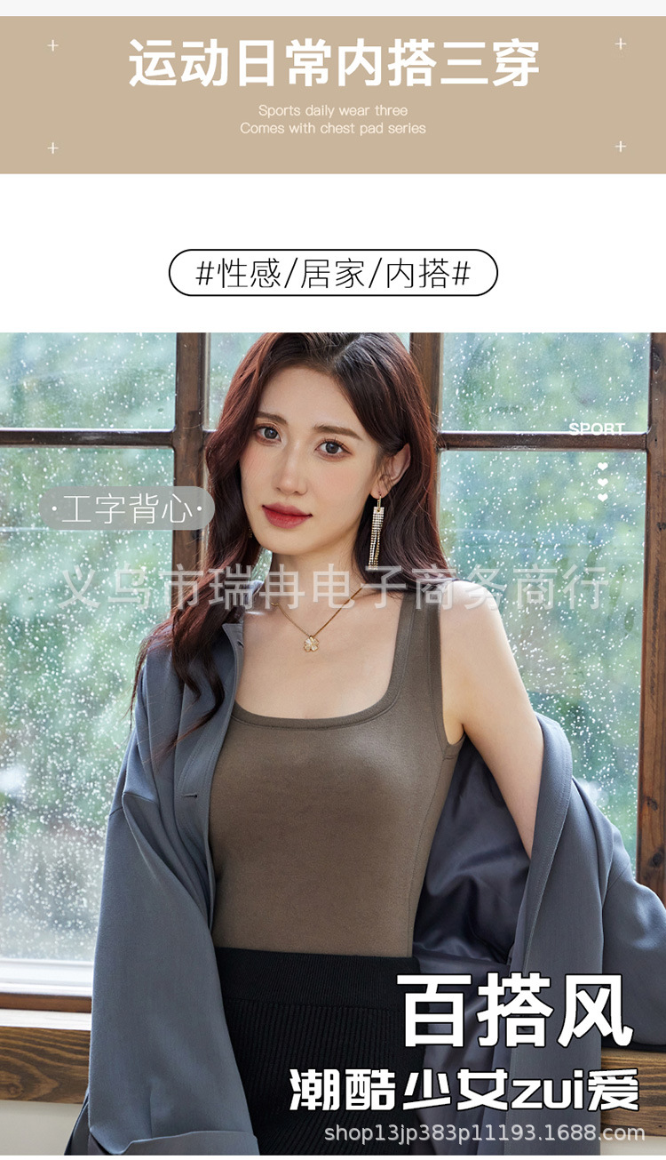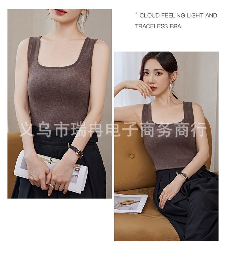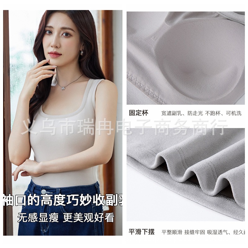 8812 펄 파이버 스퀘어 칼라 조끼 여성 가슴 패드 고정 컵 마스크 내부 안티 러닝 라이트 방지 속옷 통기성 슬림 핏