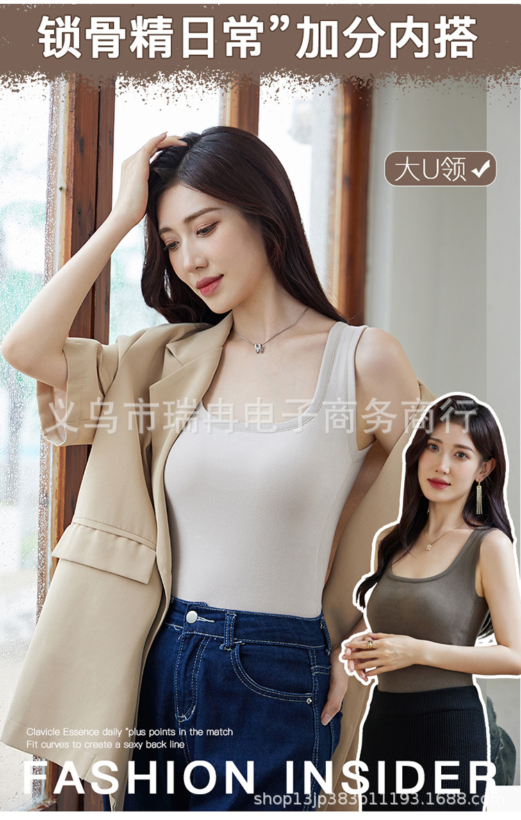 8812 펄 파이버 스퀘어 칼라 조끼 여성 가슴 패드 고정 컵 마스크 내부 안티 러닝 라이트 방지 속옷 통기성 슬림 핏스토어 가기