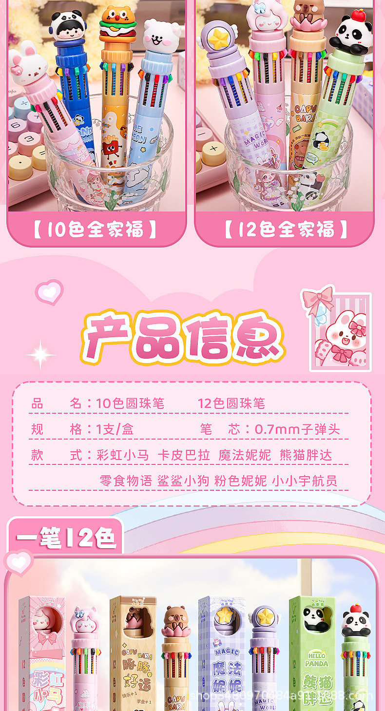 만화 귀여운 가족 10 색 볼펜 멀티 컬러 프레스 핸드 계정 펜 높은 색상 값 모델링 컬러 펜 문구 도매