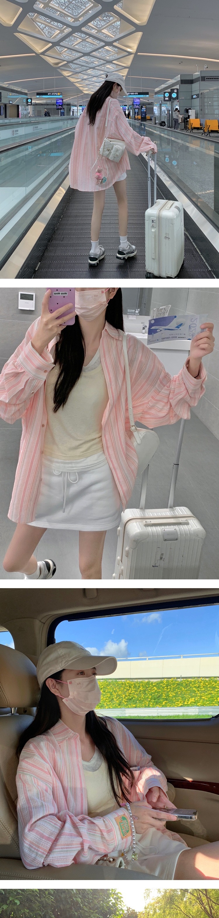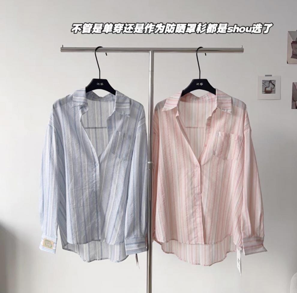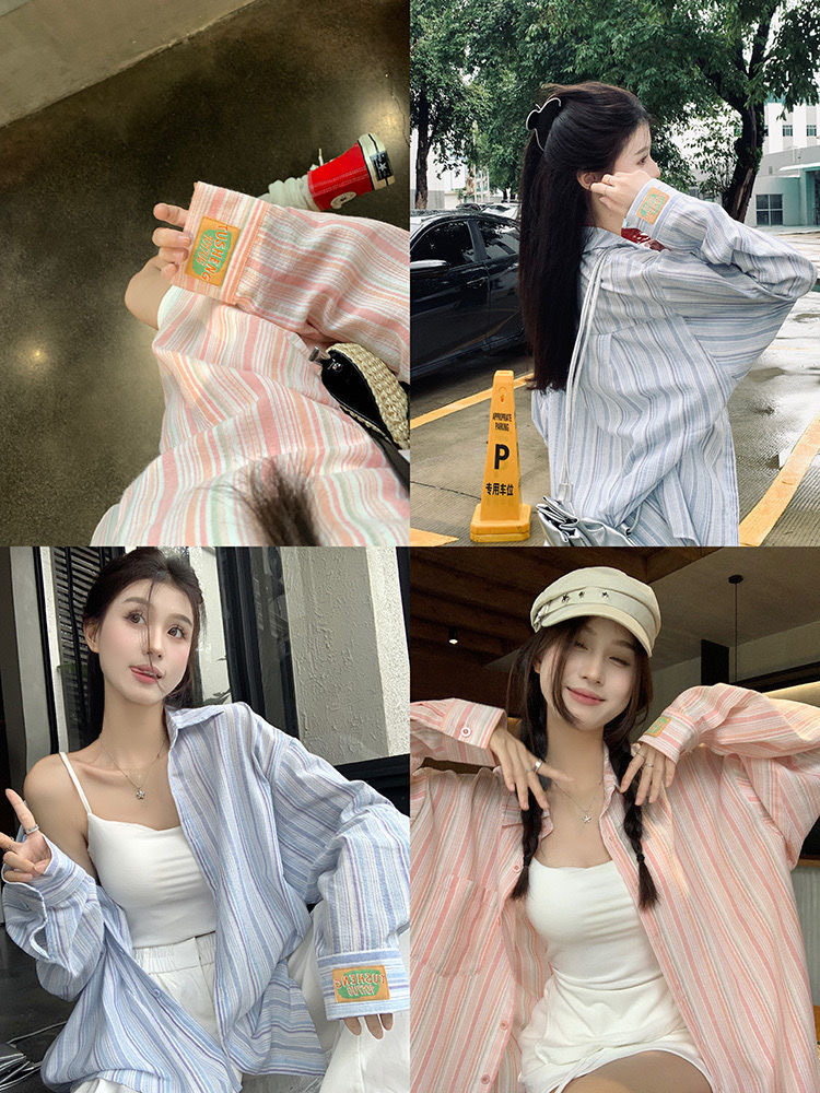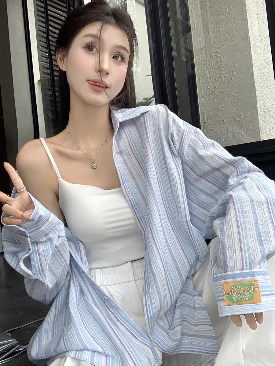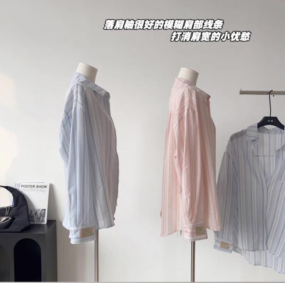 가을 새로운 패션 줄무늬 선 스크린 셔츠 여성 디자인 감각 느슨한 게으른 긴팔 재킷스토어 가기