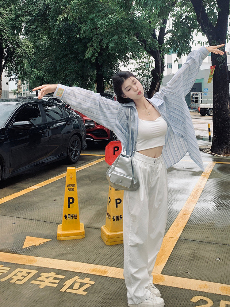 가을 새로운 패션 줄무늬 선 스크린 셔츠 여성 디자인 감각 느슨한 게으른 긴팔 재킷