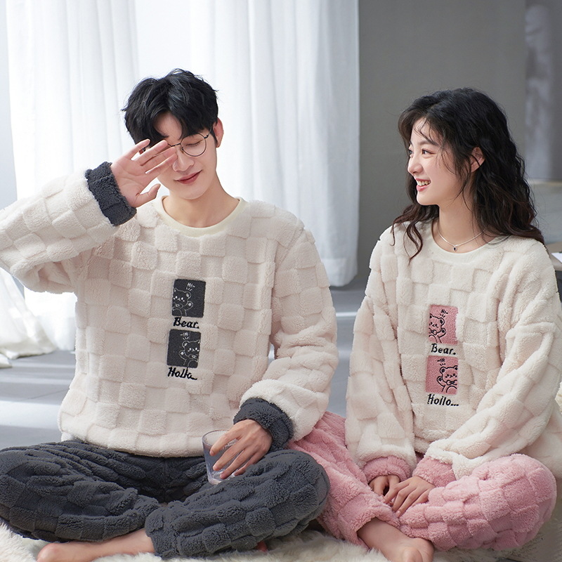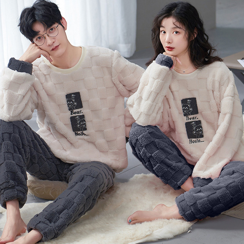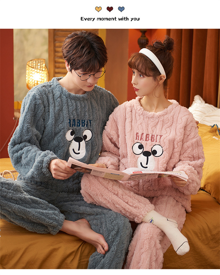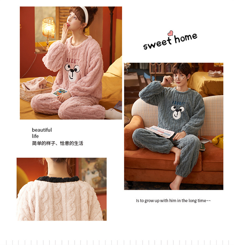 커플의 플란넬 잠옷 겨울 두꺼운 만화 남자와 여자의 따뜻한 귀여운 산호 양털 홈 옷 가을과 겨울