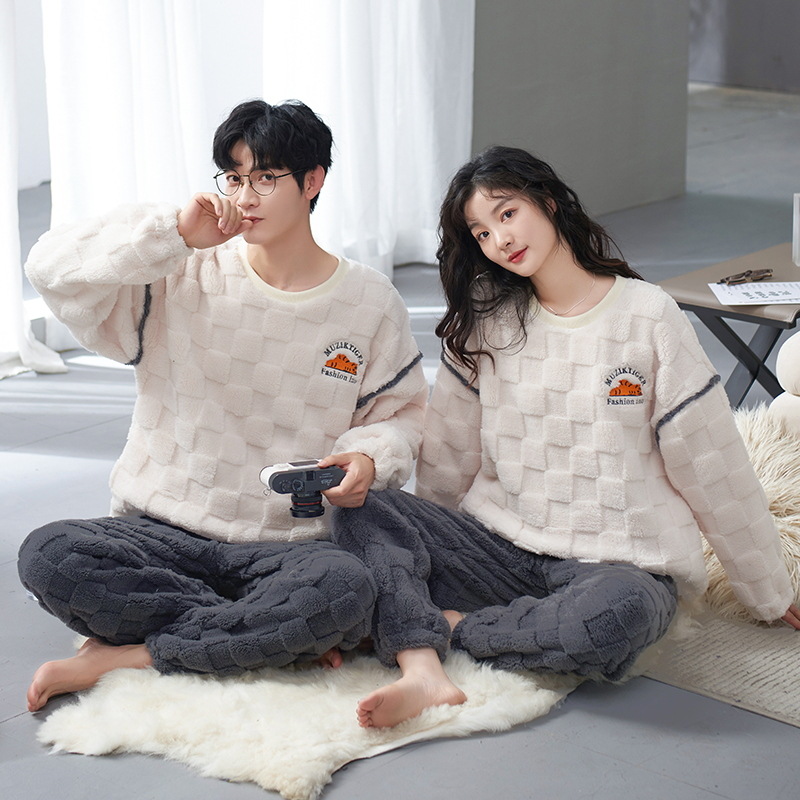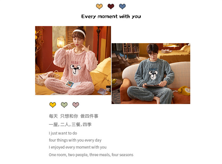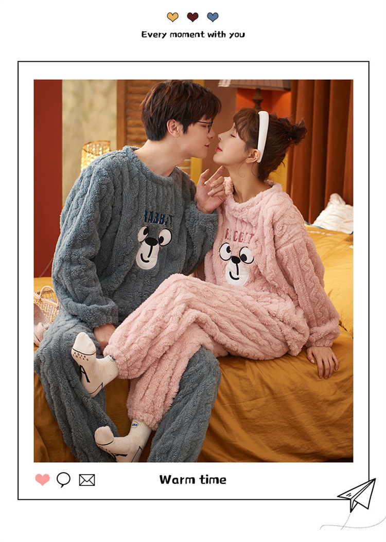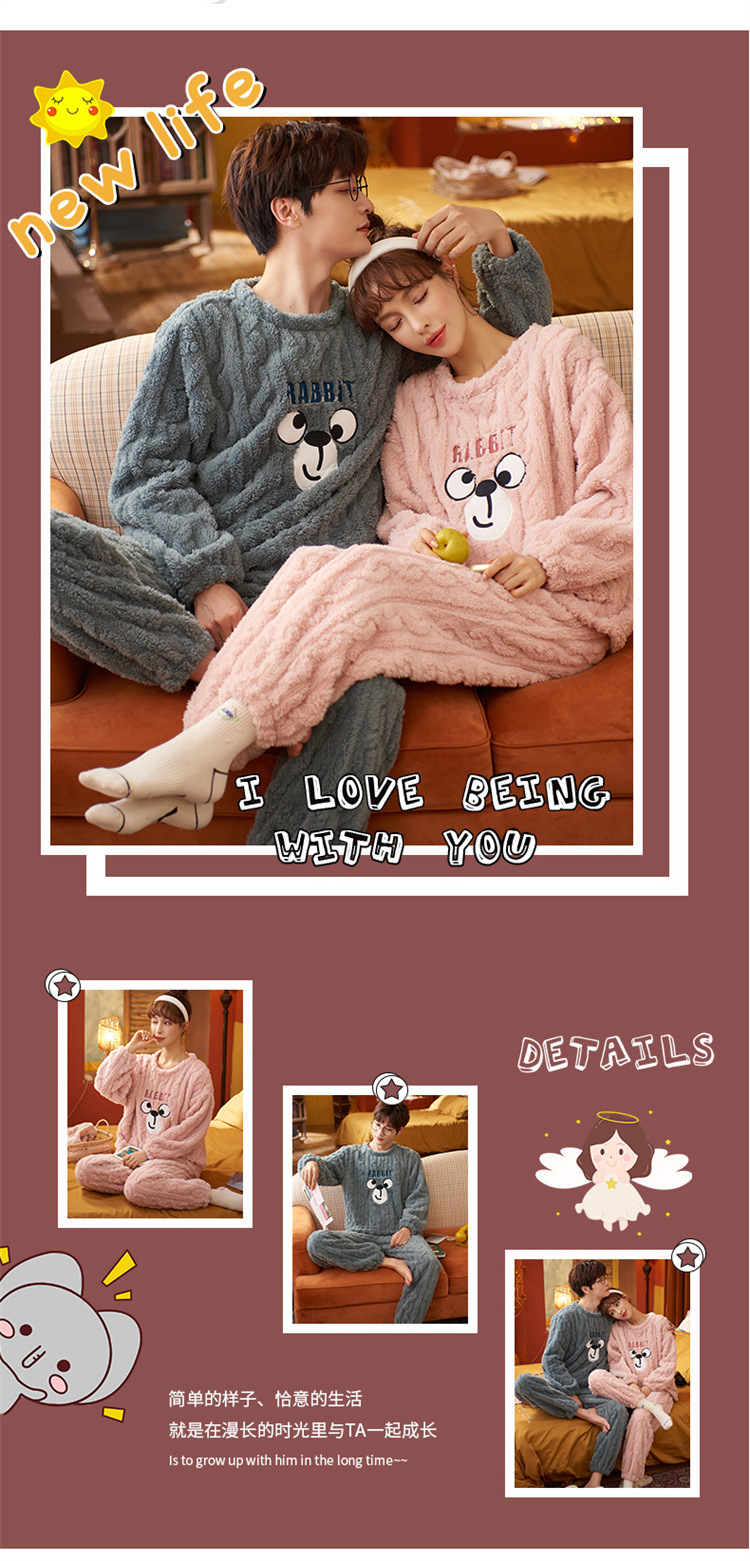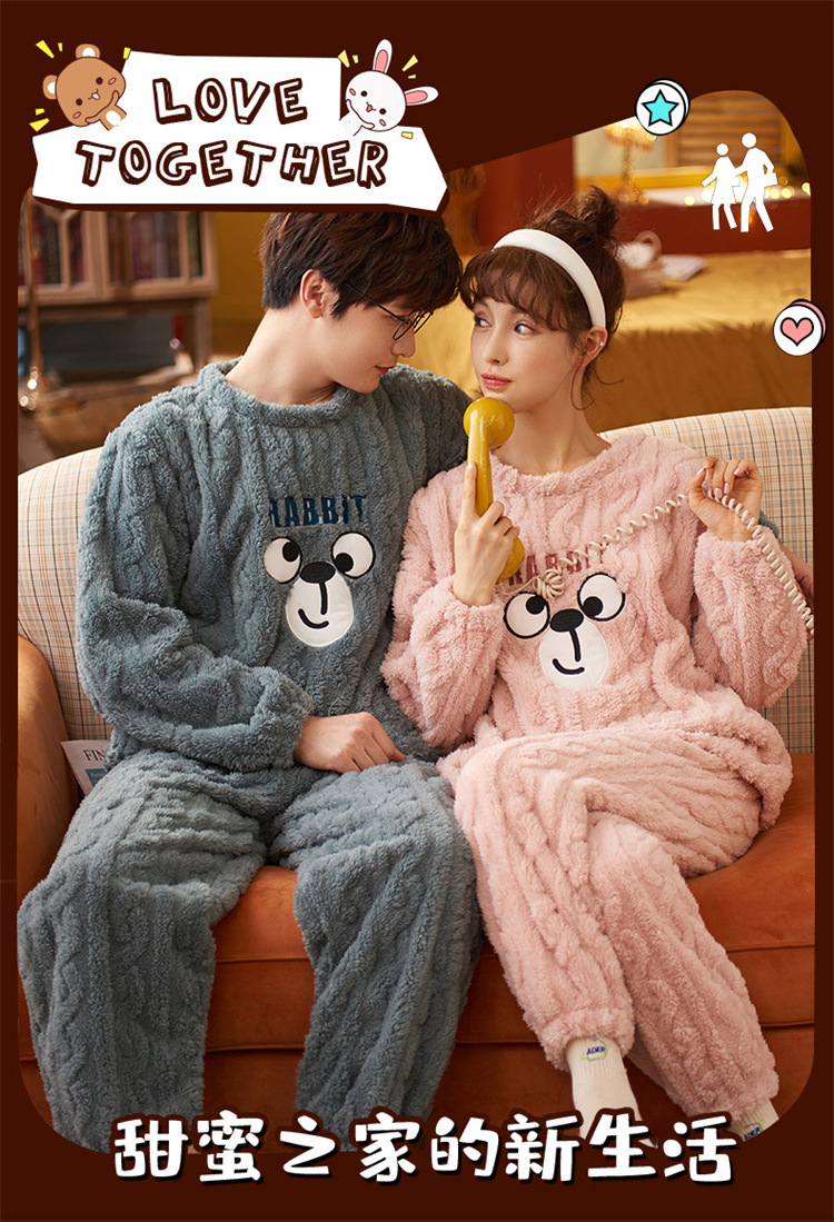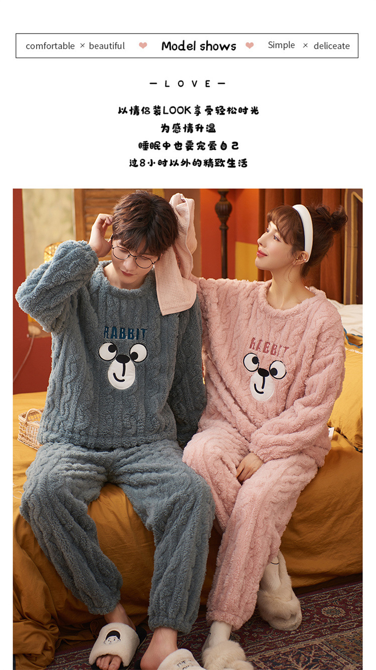 커플의 플란넬 잠옷 겨울 두꺼운 만화 남자와 여자의 따뜻한 귀여운 산호 양털 홈 옷 가을과 겨울스토어 가기