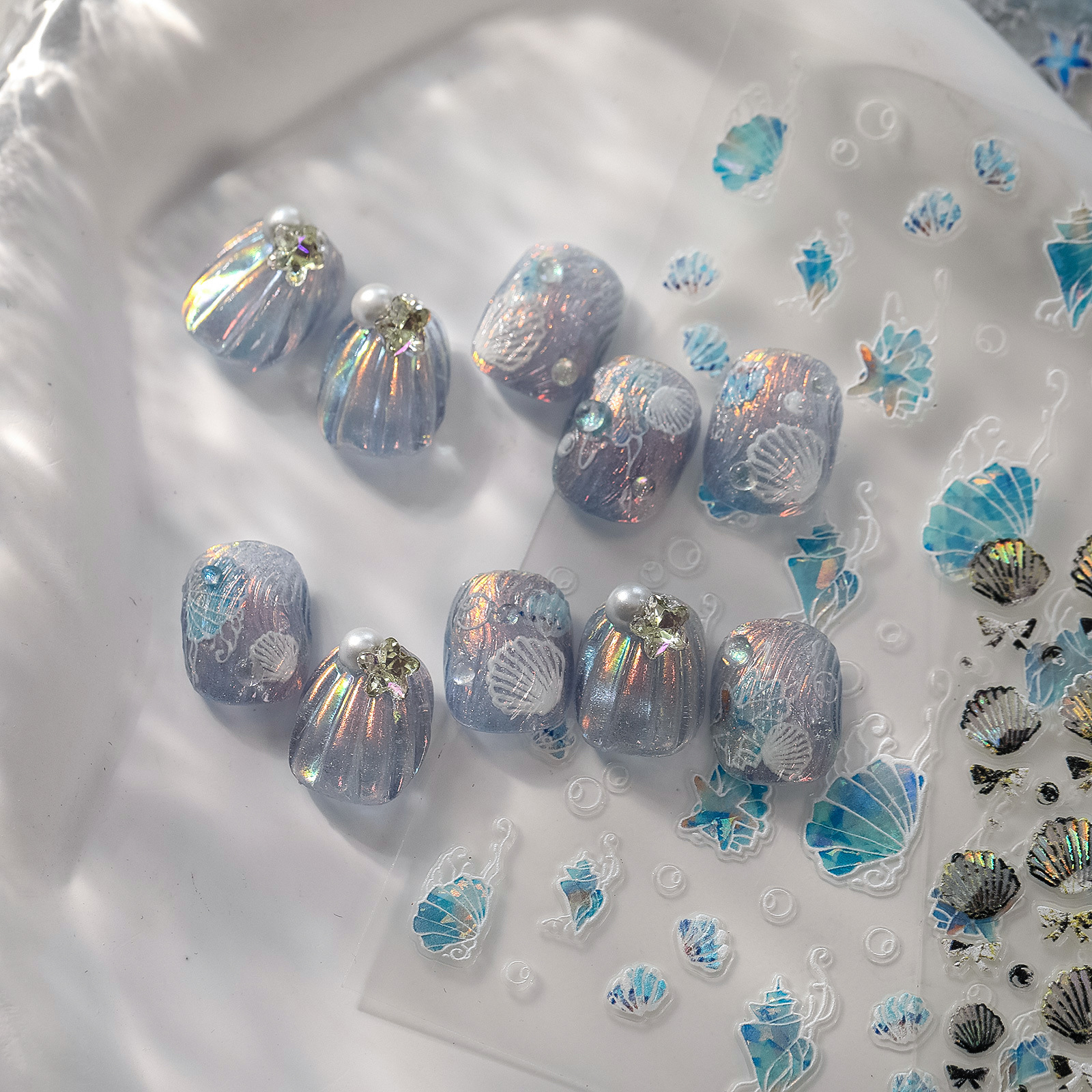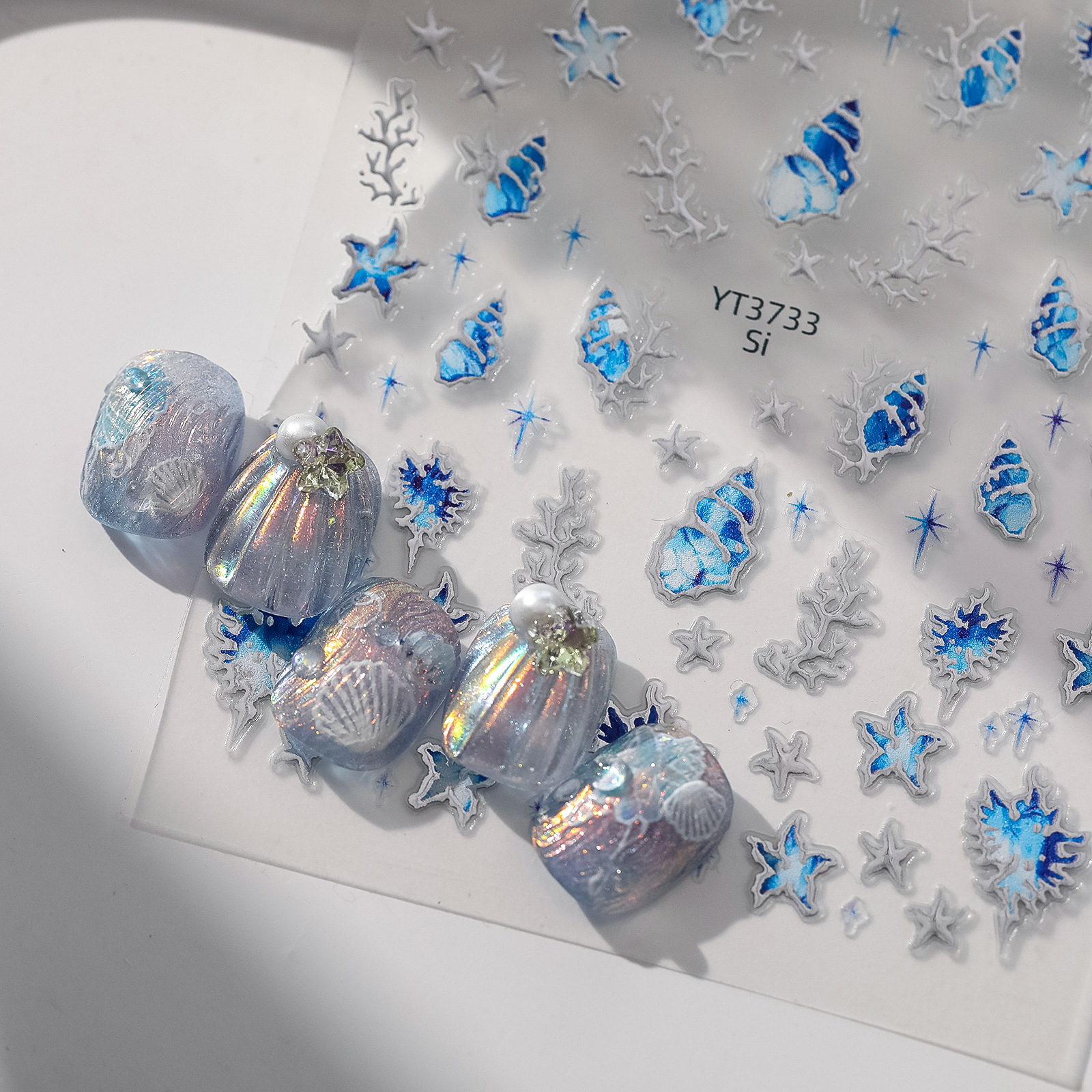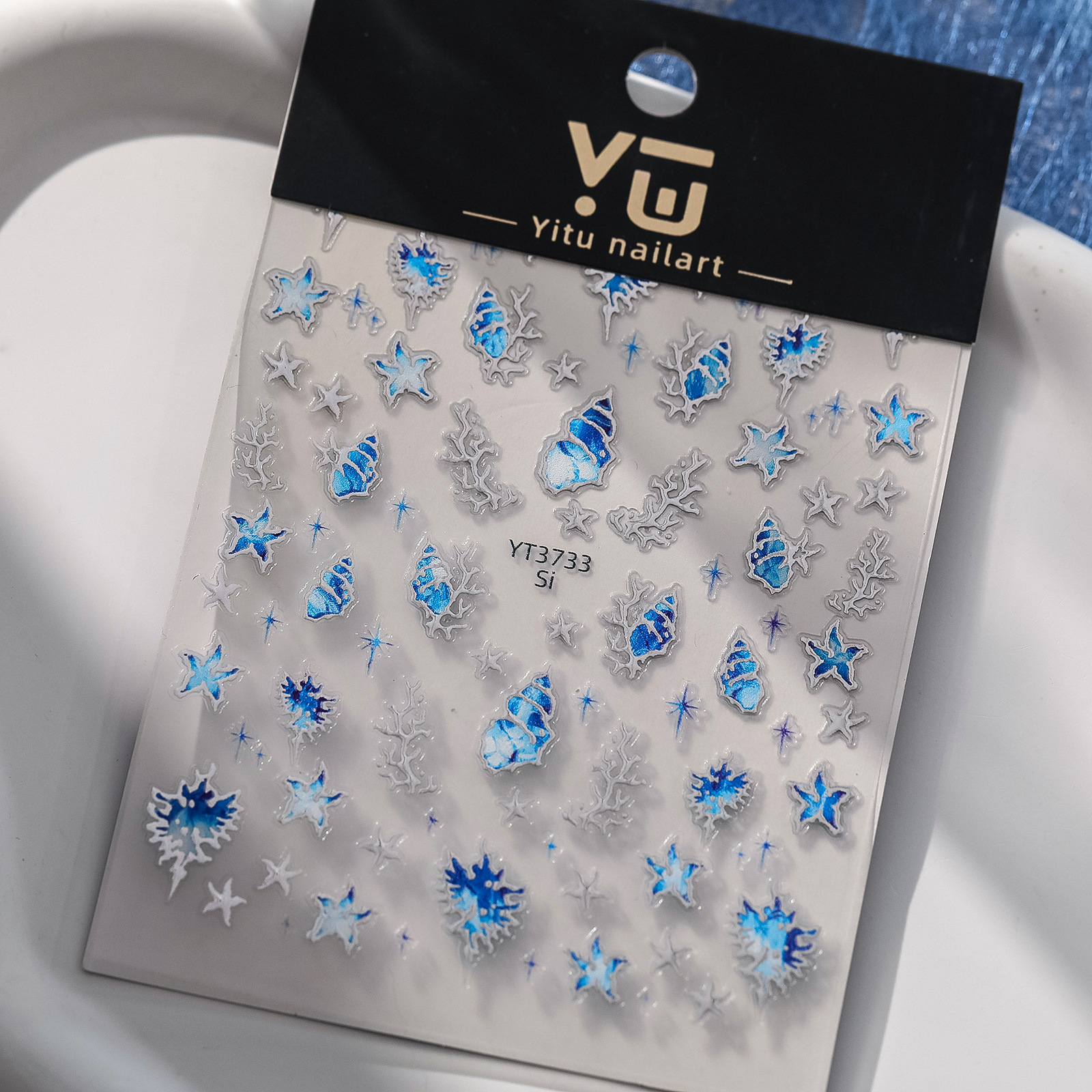 개미 그림 YITU 해양 테마 네일 아트 스티커 양각 매직 컬러 쉘 라이트 가리비 네일 스티커 YT3732