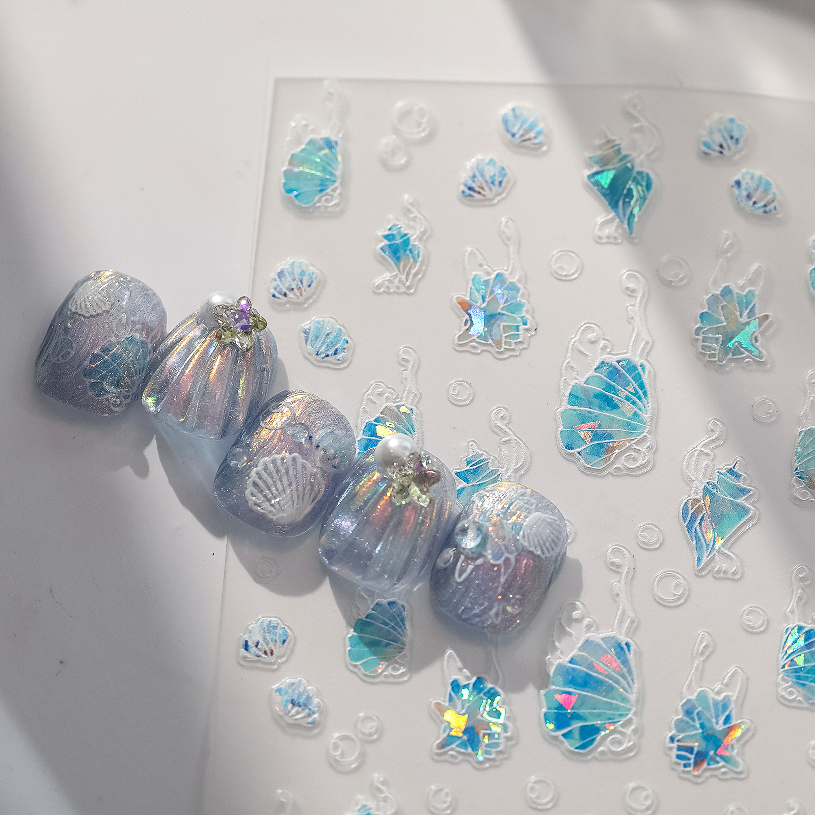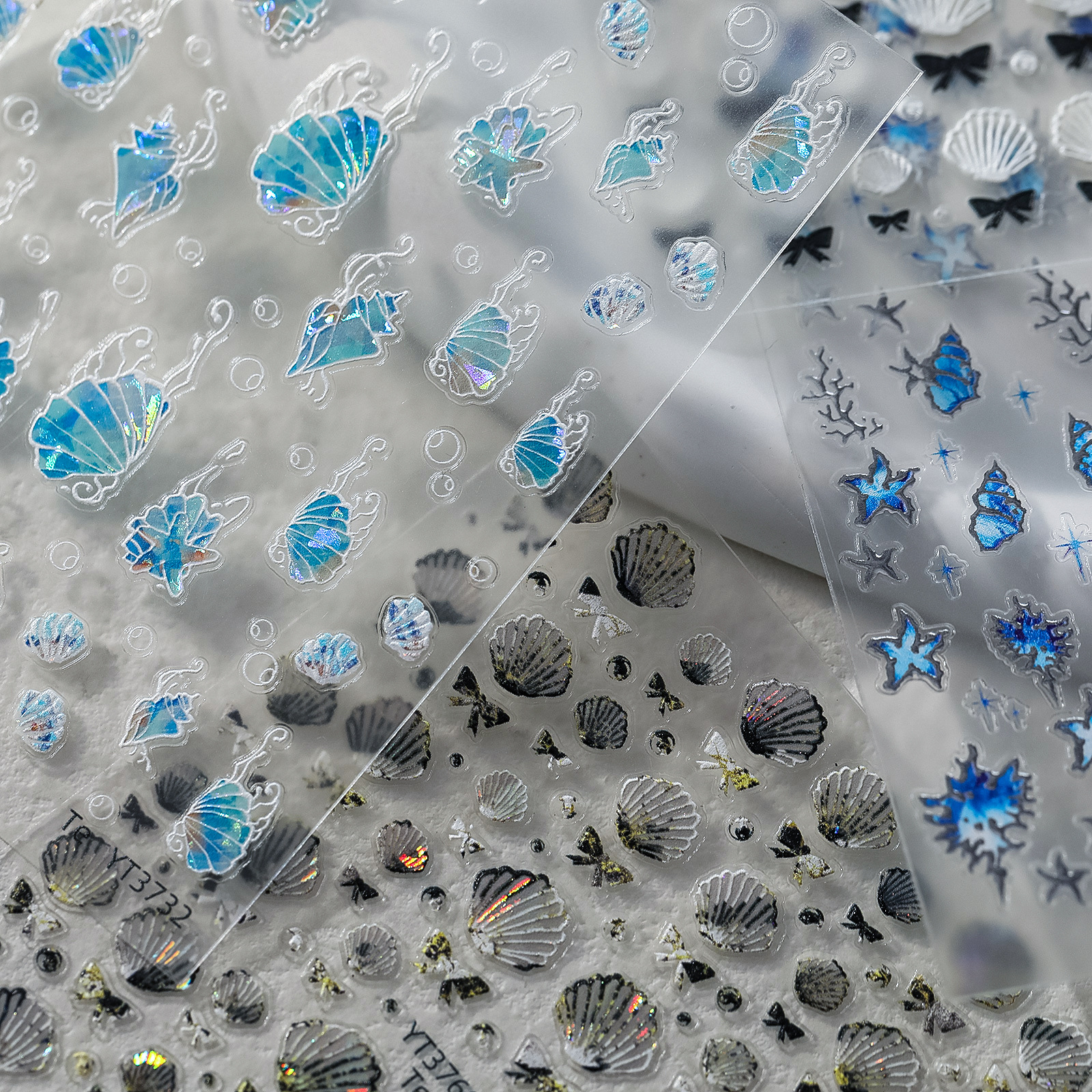 개미 그림 YITU 해양 테마 네일 아트 스티커 양각 매직 컬러 쉘 라이트 가리비 네일 스티커 YT3732스토어 가기