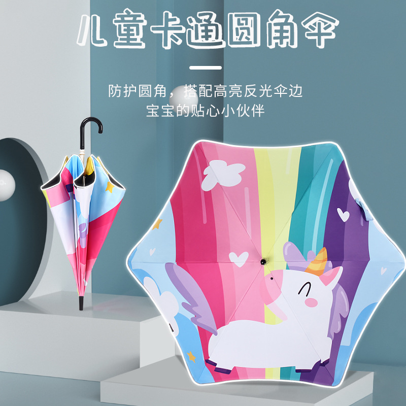 초등학교 학생을위한 도매 우산 둥근 차양 만화 어린이 우산 창조적 인 차양 울트라 라이트 어린이 우산
