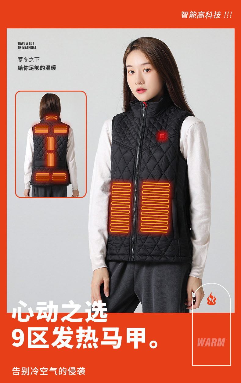 국경을 넘는 스마트 여성용 발열 조끼, 9존 3단계 온도 조절, 긴 배터리 수명, 외출 및 야외 활동용, 제조업체 도매, 슬림핏스토어 가기