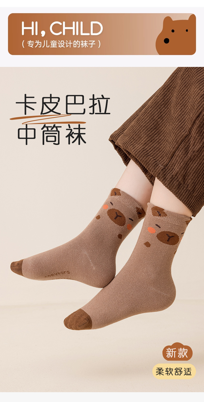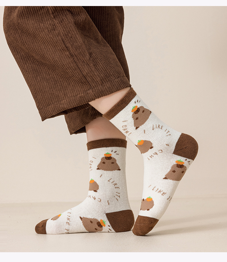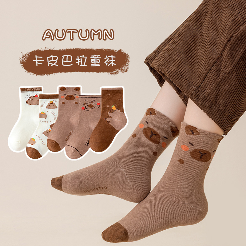 폭발 어린이 양말 봄 가을과 겨울 소년과 소녀 만화 튜브 양말 가을과 겨울 귀여운 capybara 학생 양말 도매