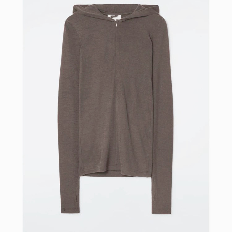 CO * S 스타일 여성의 가을 새로운 하프 지퍼 후드 울 블렌드베이스 셔츠 여성용 긴 소매 니트 탑스토어 가기