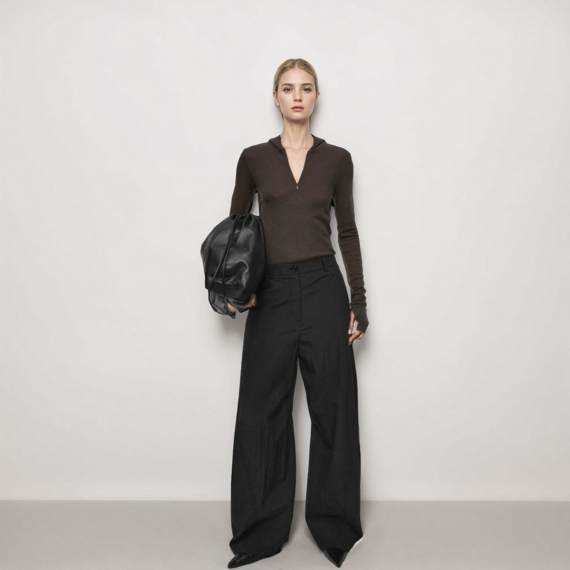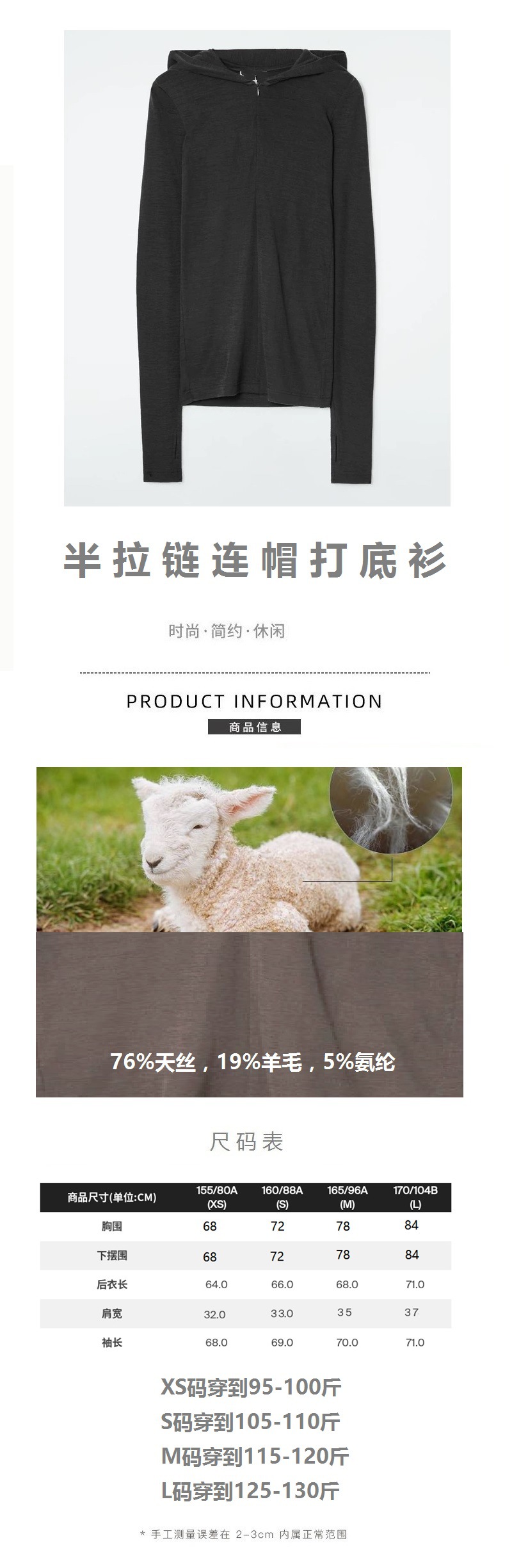 CO * S 스타일 여성의 가을 새로운 하프 지퍼 후드 울 블렌드베이스 셔츠 여성용 긴 소매 니트 탑