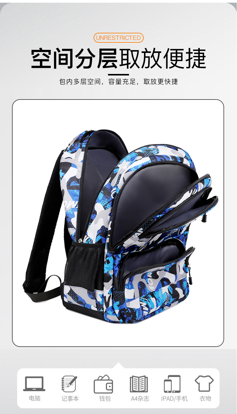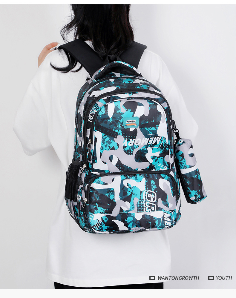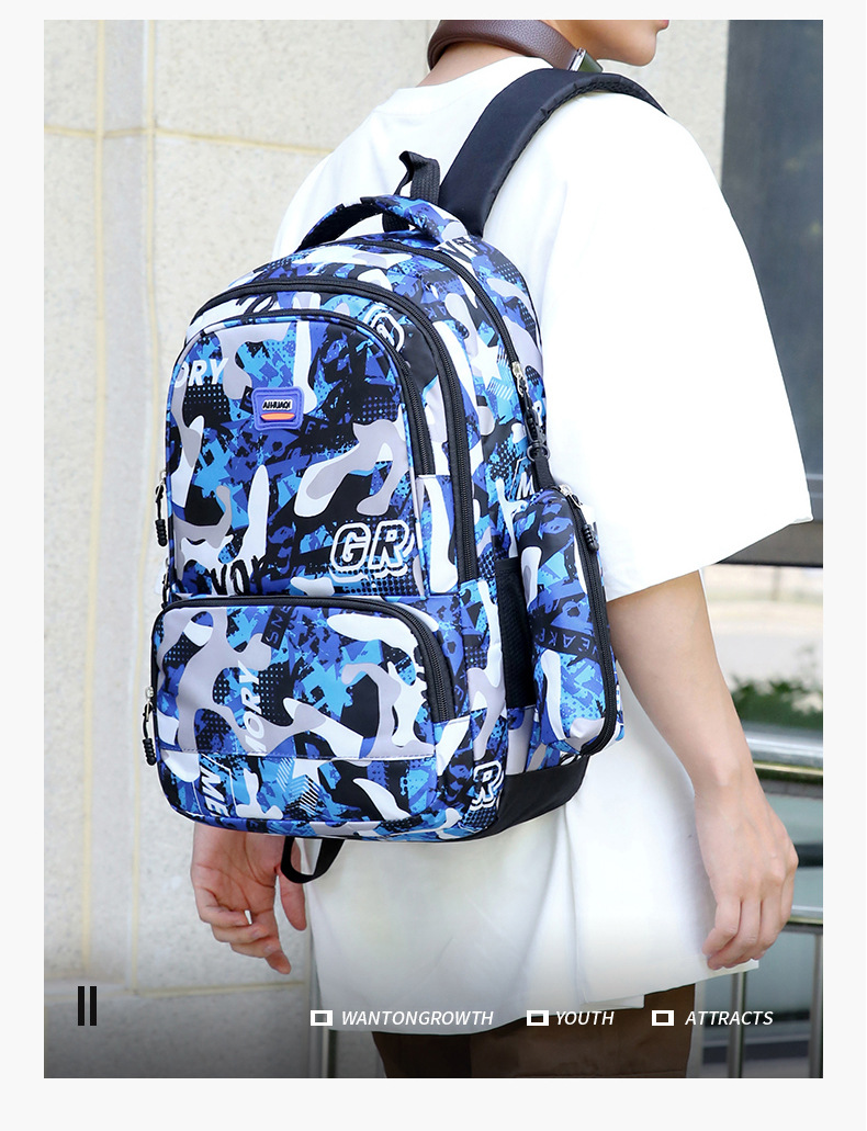 위장 인쇄 배낭 중학교 소년 위장 인쇄 대용량 캐주얼 배낭 초등학교 학교 가방