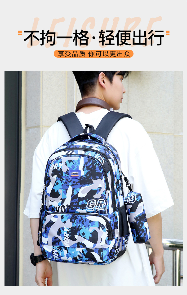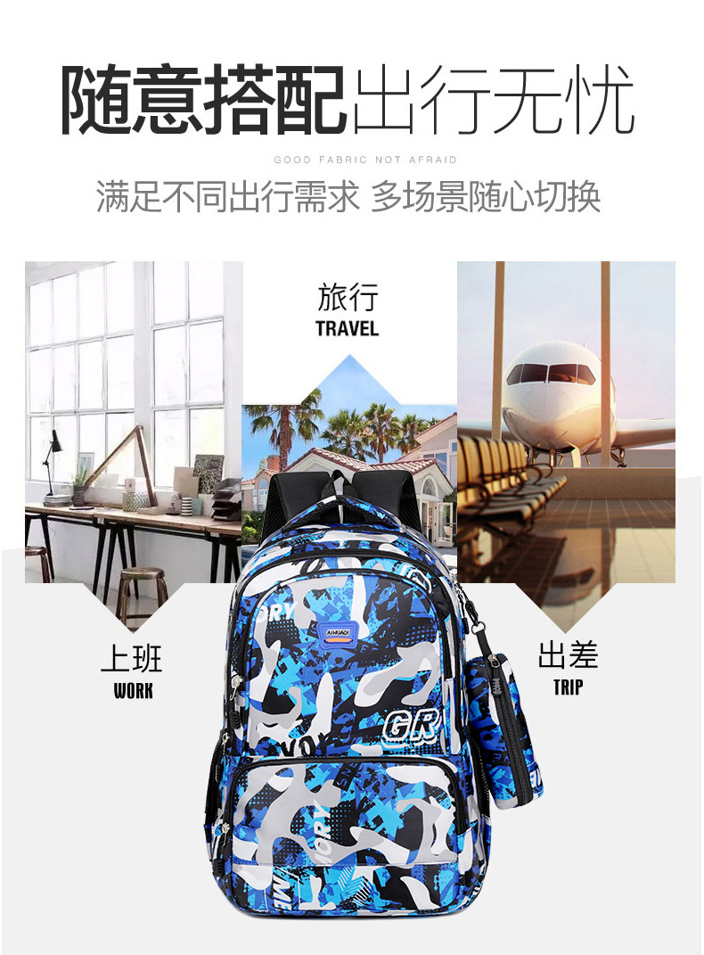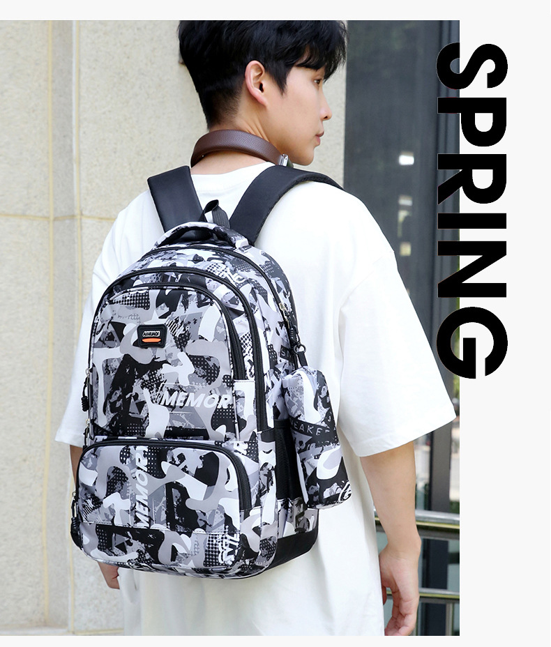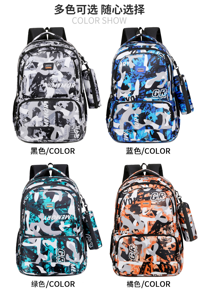 위장 인쇄 배낭 중학교 소년 위장 인쇄 대용량 캐주얼 배낭 초등학교 학교 가방