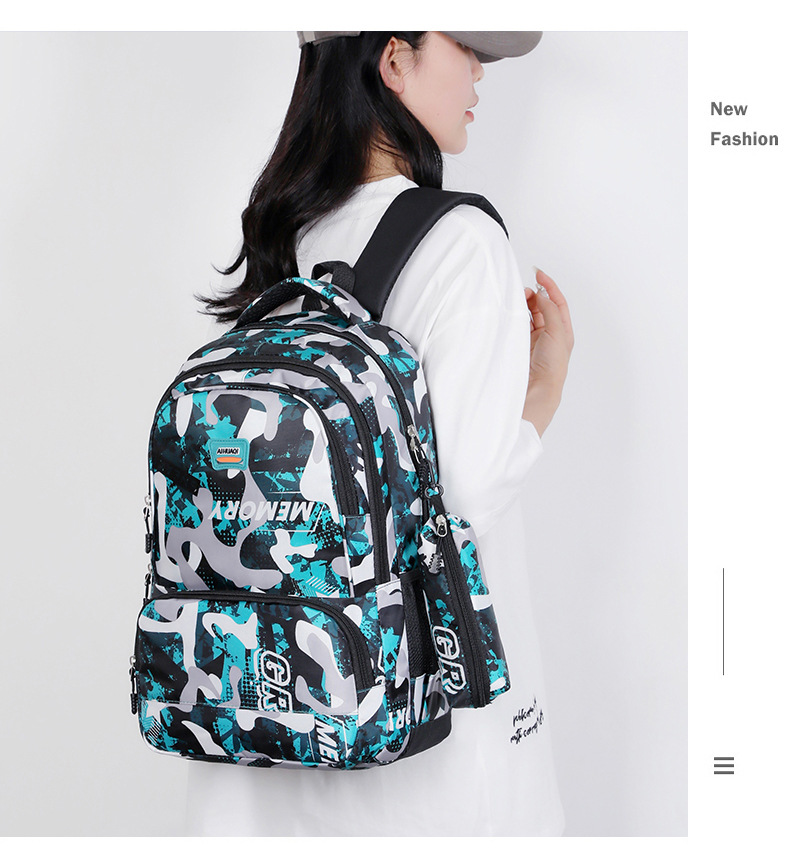위장 인쇄 배낭 중학교 소년 위장 인쇄 대용량 캐주얼 배낭 초등학교 학교 가방스토어 가기