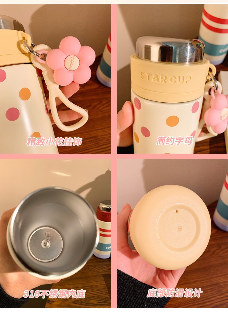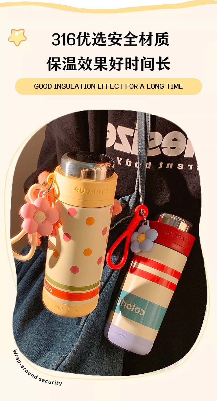 대용량 316 스테인레스 스틸 보온병 컵 높은 색상 가치 끈 휴대용 귀여운 만화 티 컵 야외 여신 컵스토어 가기