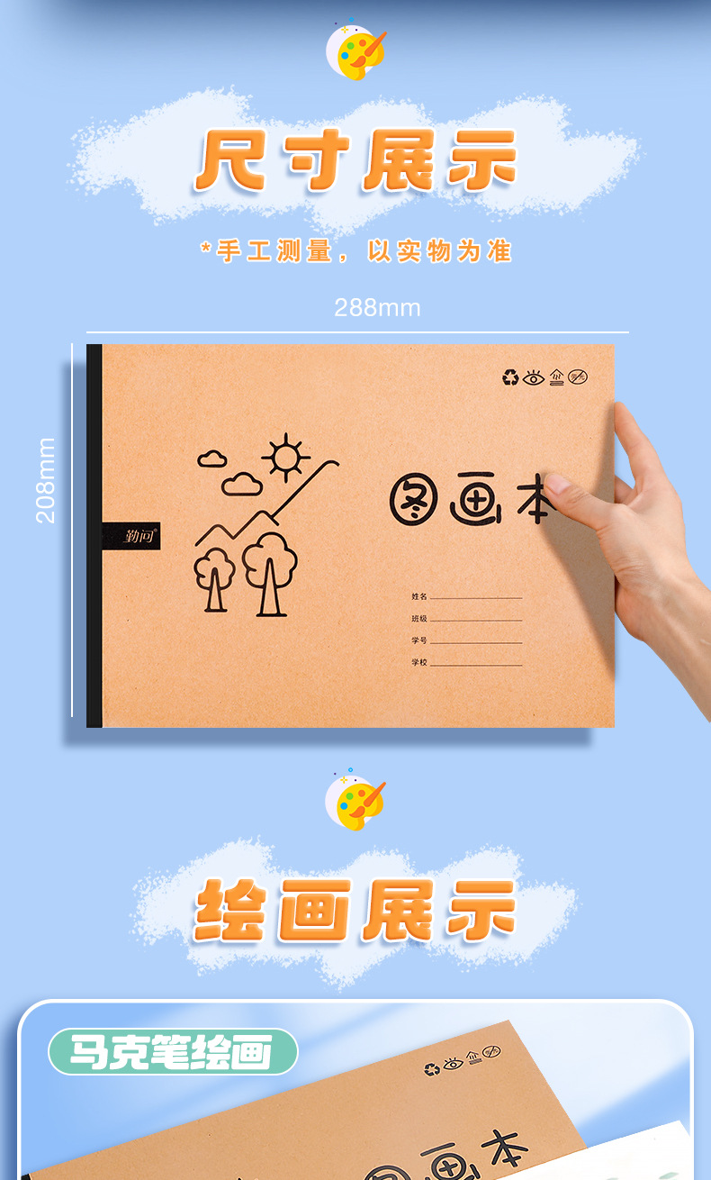 Wright A4 두꺼운 그림책 유치원 학생 특별 그리기 책 빈 낙서 그리기 예술 스케치북스토어 가기
