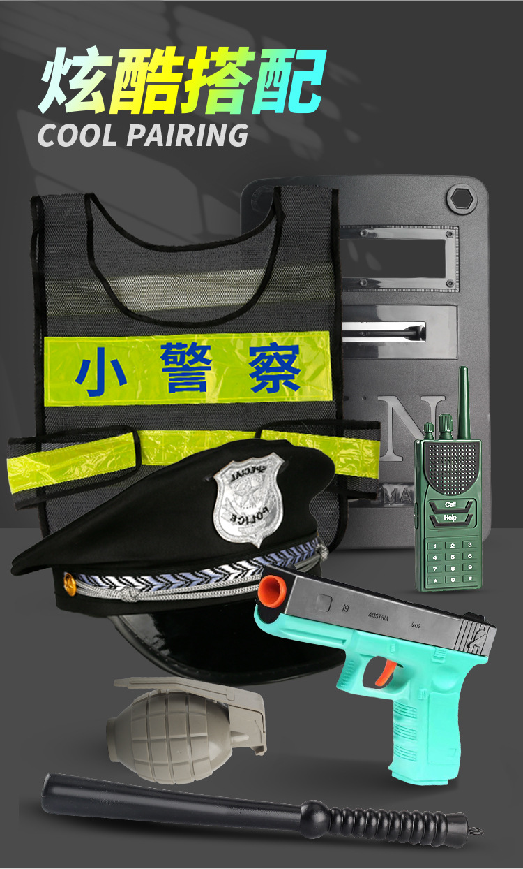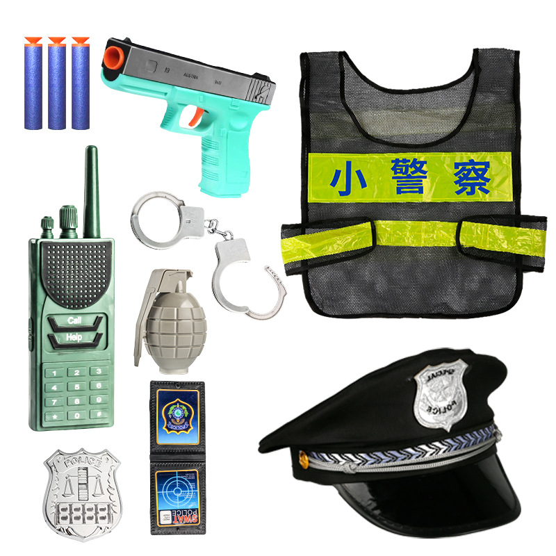 어린이 소년 작은 경찰 장난감 총 장비 세트 작은 특수 경찰 옷은 실제 선물 도매에서 닭고기를 먹는다