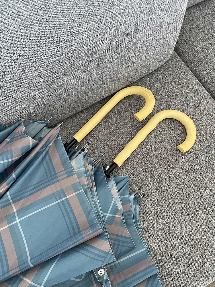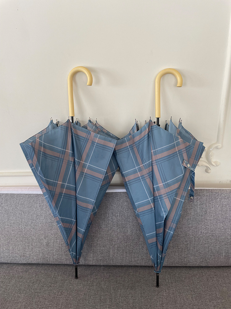 한국식 심플 급 격자 무늬 우산 남성용 자동 맑고 비오는 이중 목적 긴 손잡이 우산 여성의 강한 바람 방지 강화 나무 곡선 손잡이 우산스토어 가기