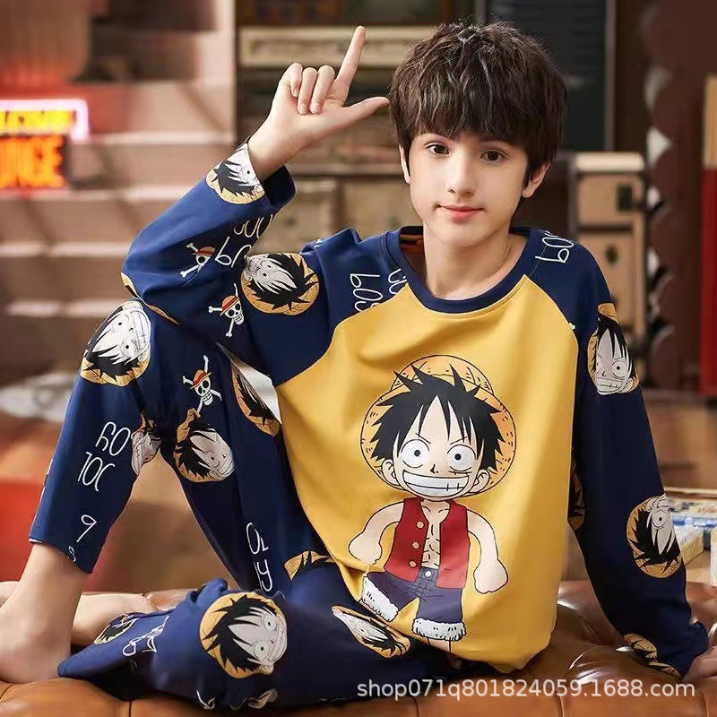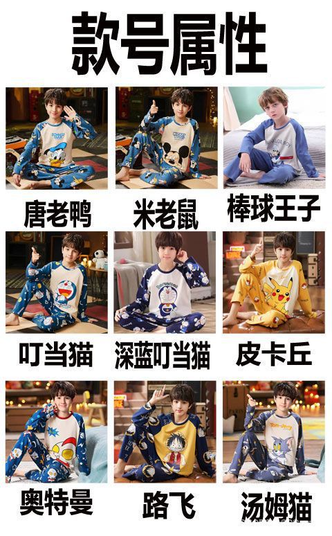 한국판 새 소년 잠옷 봄과 가을 바지 긴 소매 얇은 어린이 어린 소년 십대 홈 의류 도매