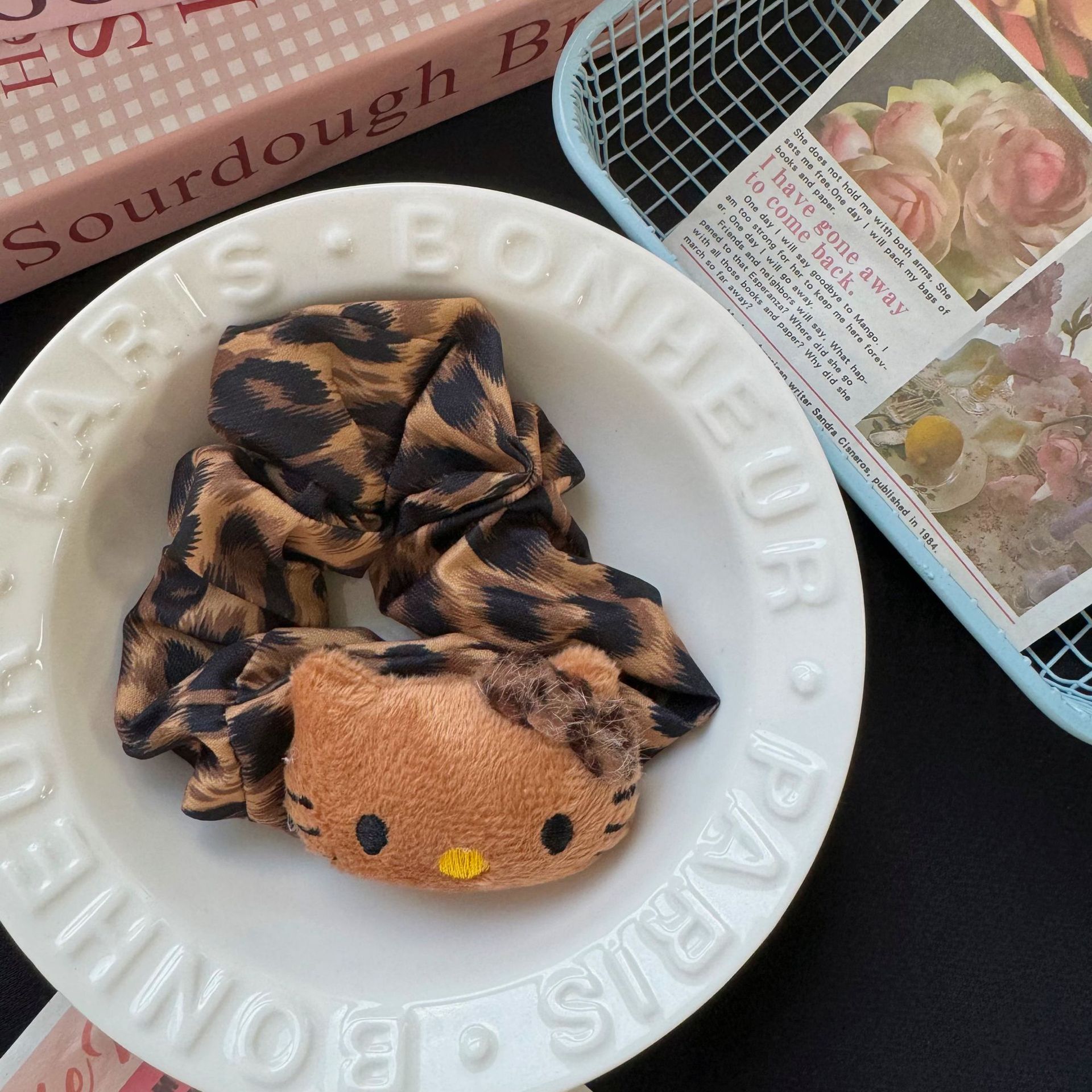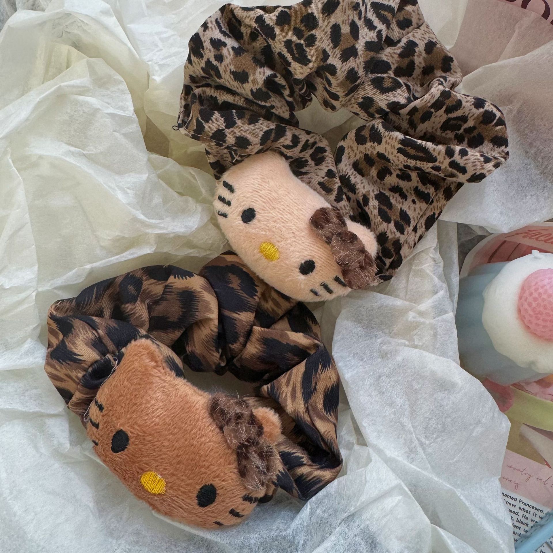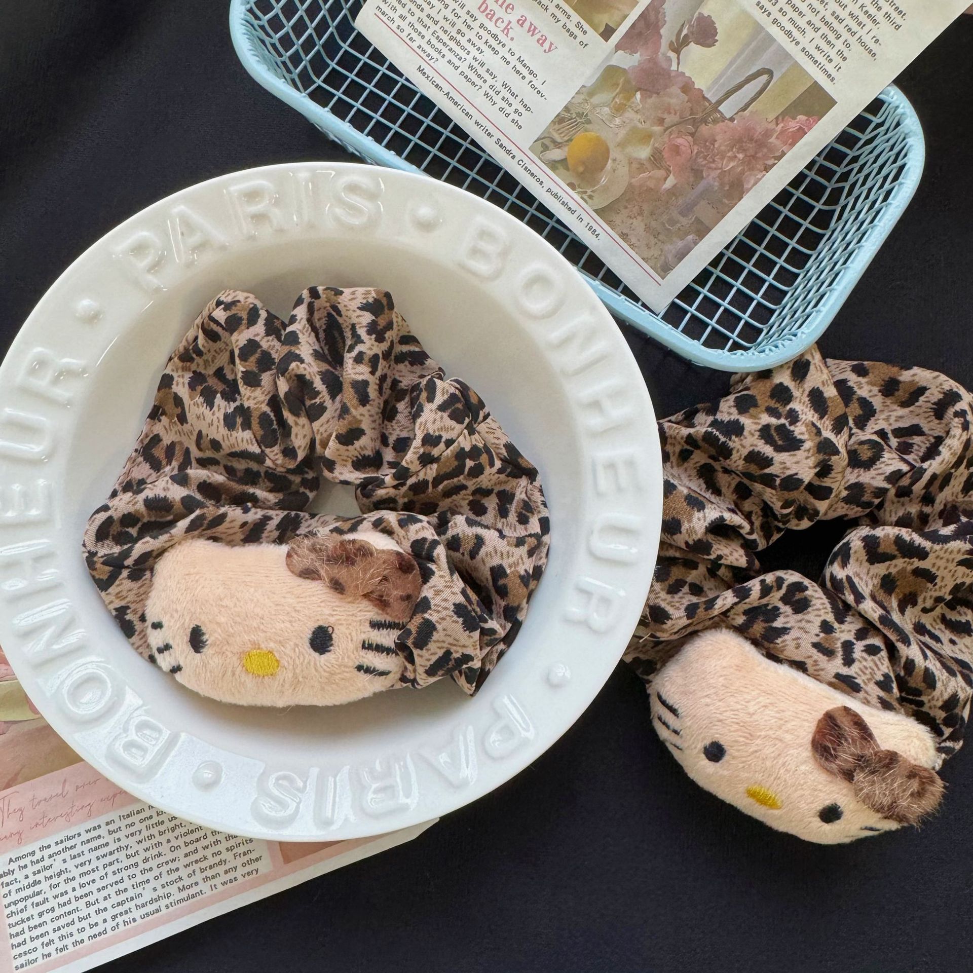 가을과 겨울 새로운 레오파드 키티 헤어 링 플러시 헤어 로프 귀여운 헤어 액세서리 소녀 포니 테일 볼 헤드 고무 밴드스토어 가기