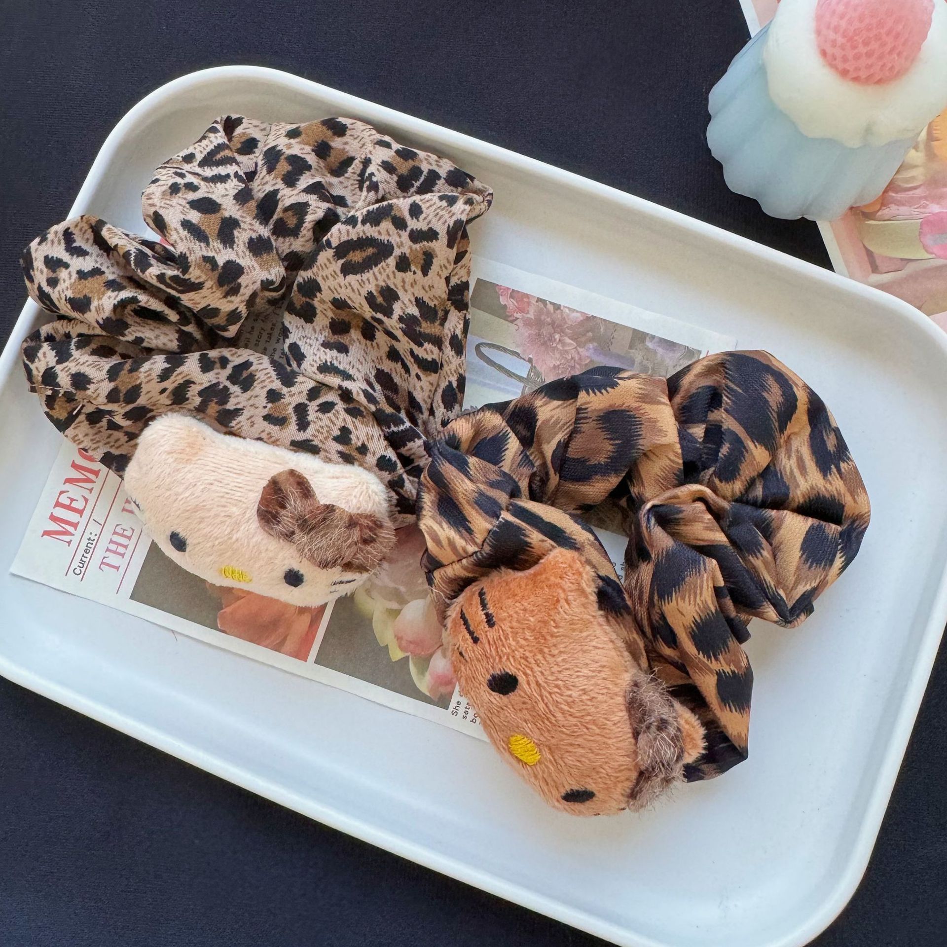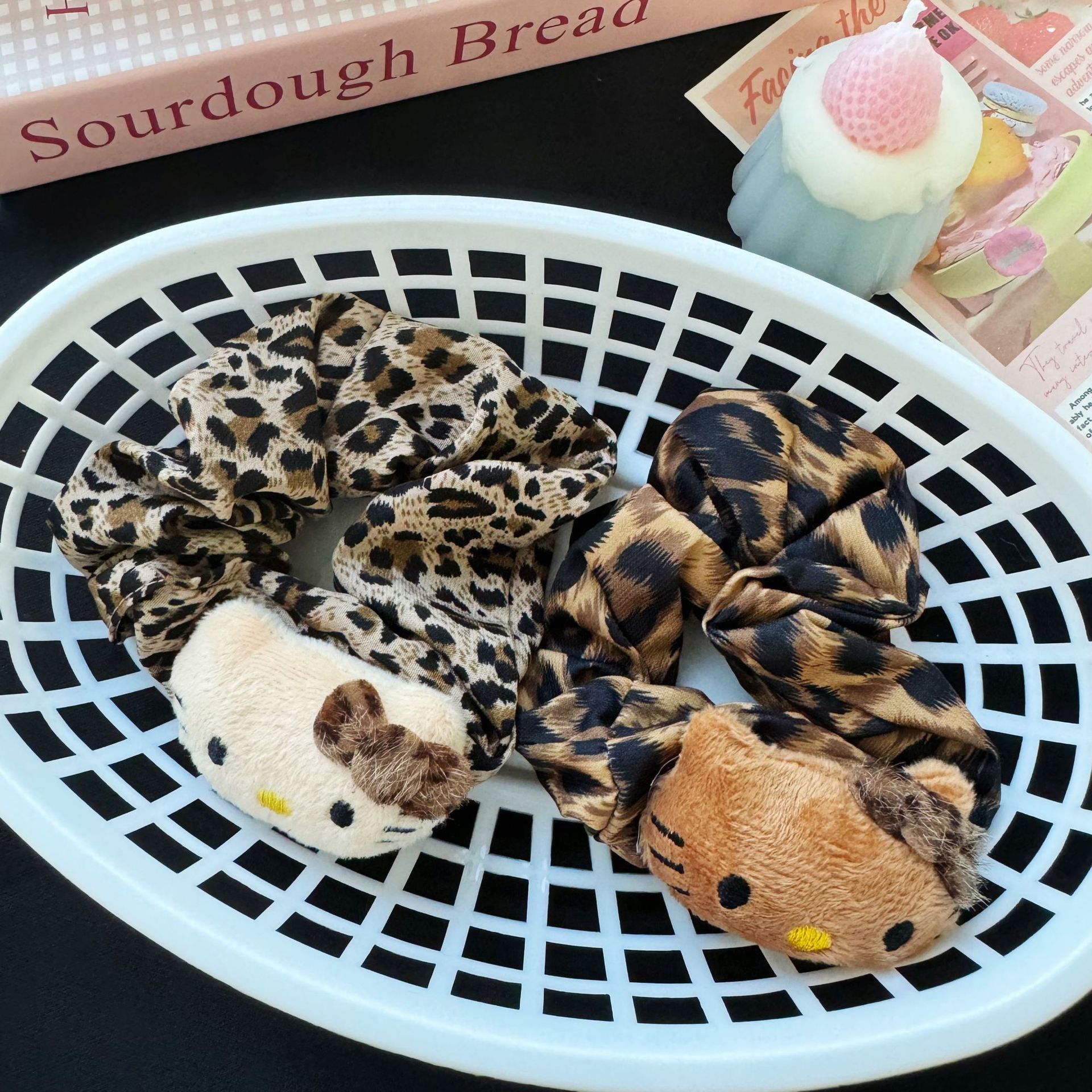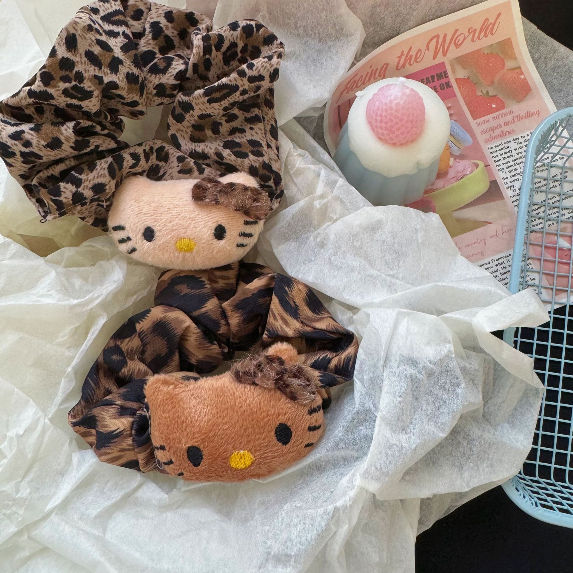 가을과 겨울 새로운 레오파드 키티 헤어 링 플러시 헤어 로프 귀여운 헤어 액세서리 소녀 포니 테일 볼 헤드 고무 밴드스토어 가기