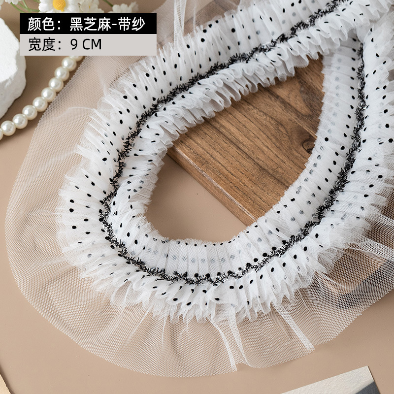 9cm 폭 흑백 주름 메쉬 레이스 수제 DIY 목선 커프 장식 레이스 액세서리스토어 가기