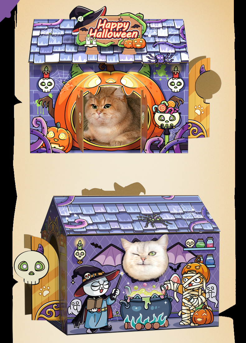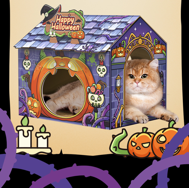 할로윈 크리스마스 접이식 해외 무역 친환경 문화창의 테마 창의적인 종이 고양이 집 둥지 스크래치 보드 애완동물 침대스토어 가기
