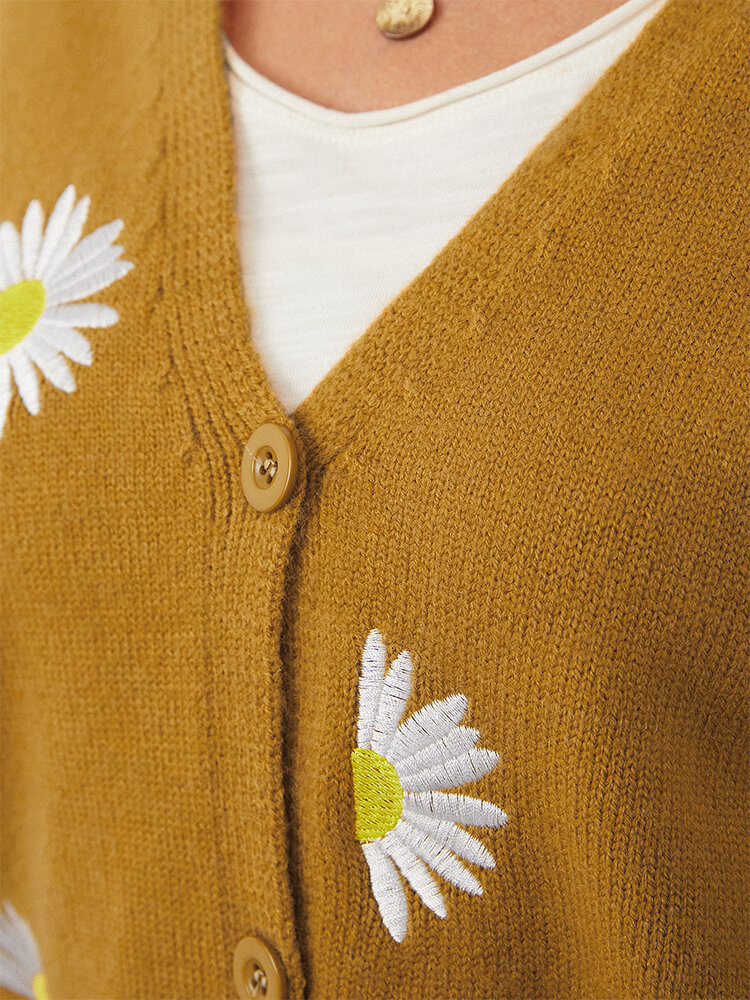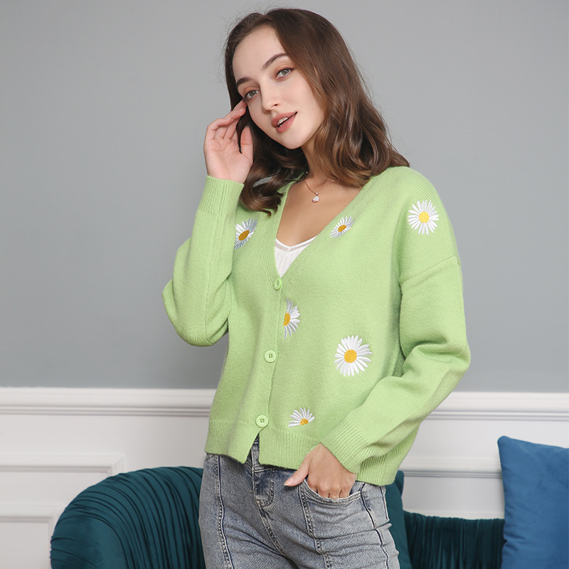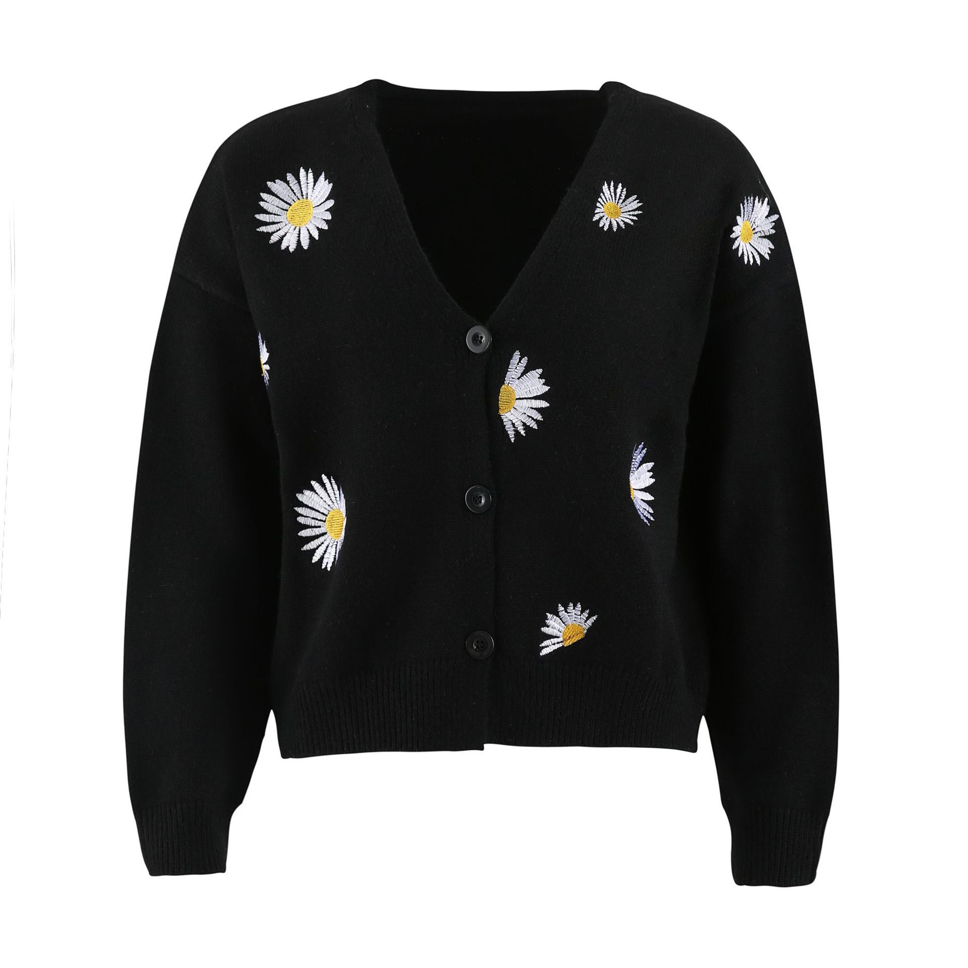 국경 간 아마존 유럽과 미국 대외 무역 새로운 여성 니트 카디건 싱글 브레스트 가을 국화 자수 코트 스웨터 여성 의류스토어 가기