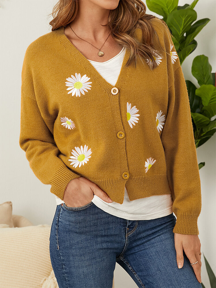 국경 간 아마존 유럽과 미국 대외 무역 새로운 여성 니트 카디건 싱글 브레스트 가을 국화 자수 코트 스웨터 여성 의류