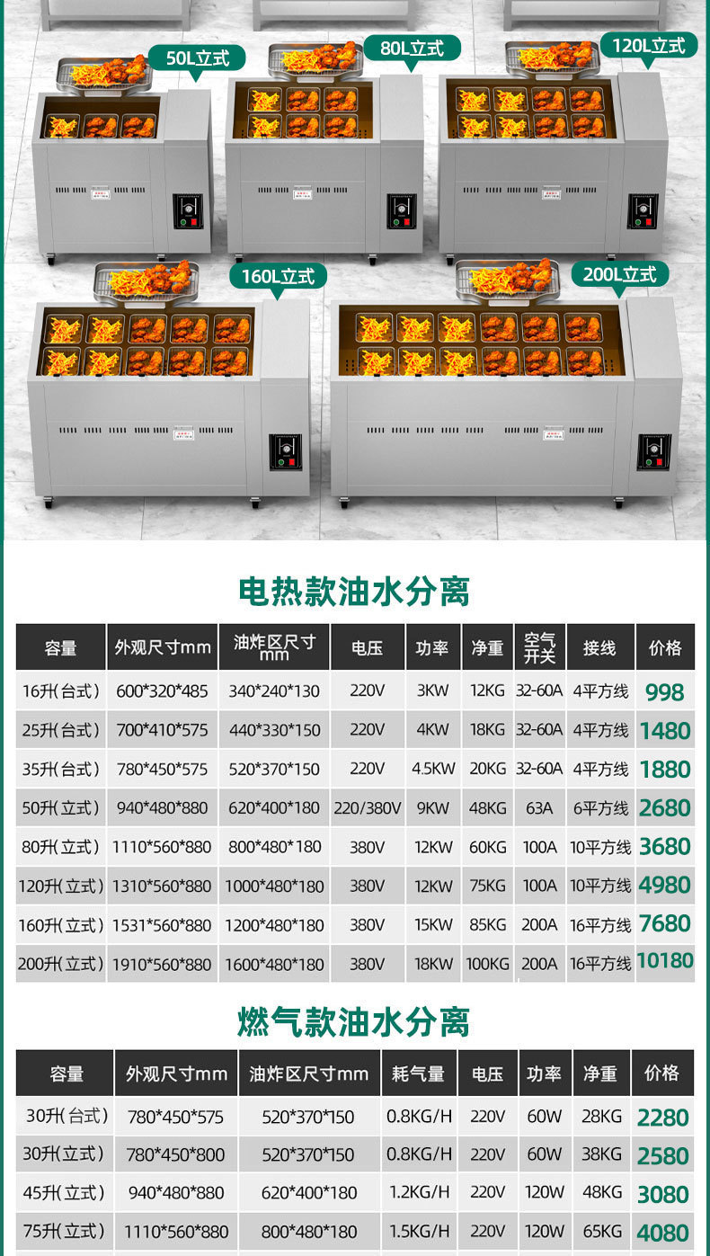 Mengshi 오일-물 분리 프라이어 상업 스톨 대용량 전기 프라이어 가스 프라이드 치킨 스트링 튀김 반죽 스틱 기계스토어 가기