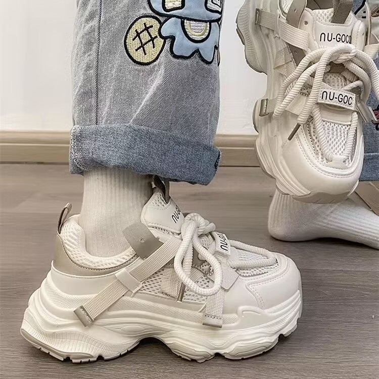 토레 신발 여성의 2024 새로운 봄과 가을 통기성 메쉬 얇은 올매치 두꺼운 단독 증가 캐주얼 스포츠 신발스토어 가기