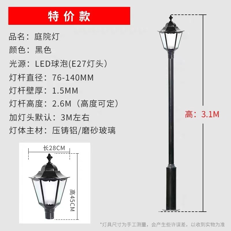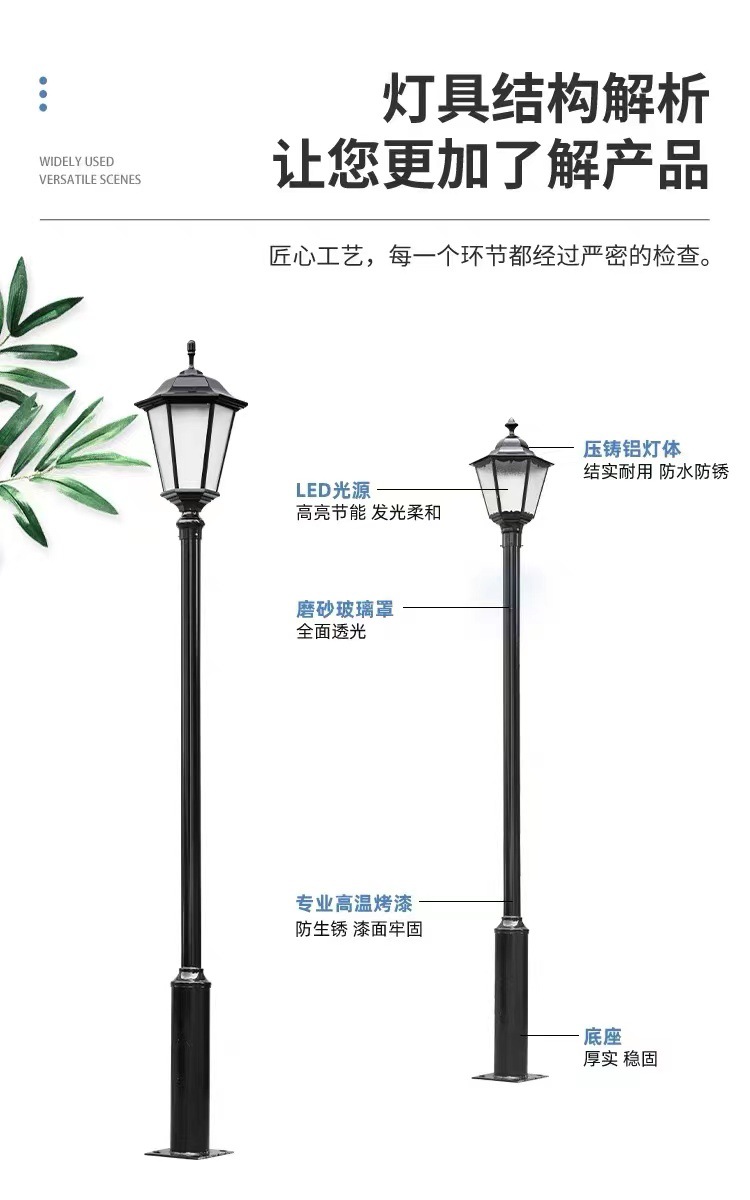 현대 미니멀리스트 정원 조명 3m 야외 알루미늄 프로파일 조경 조명 공원 커뮤니티 광장 조명 태양 광 가로등