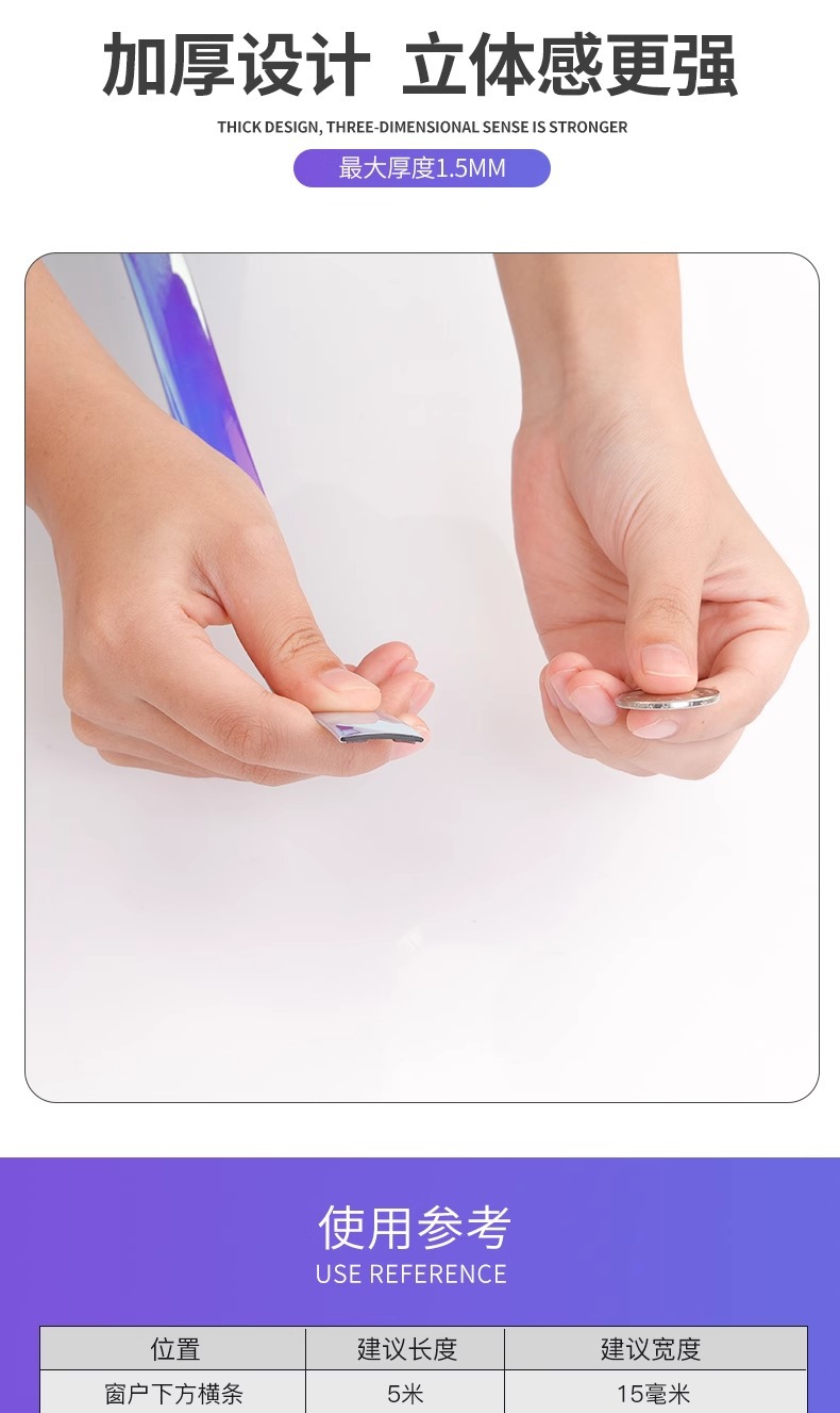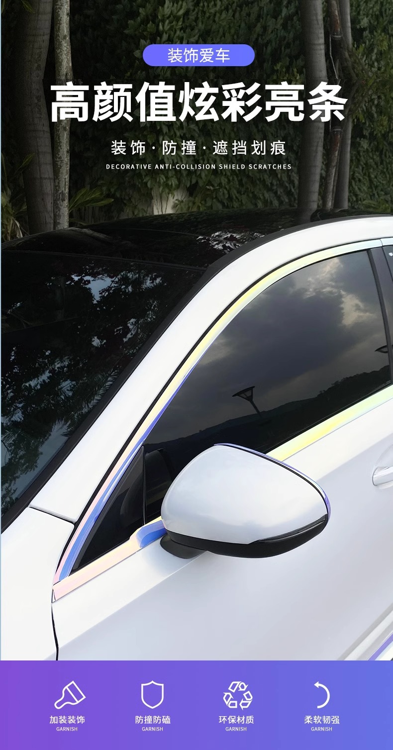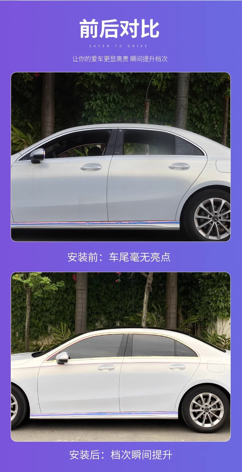 商品使用贴位参考: 后视反光镜、车身顶棚、车窗胶条、车门、车门下裙边前后保险杠大包围(又可以做防擦条)、后窗窗边。
