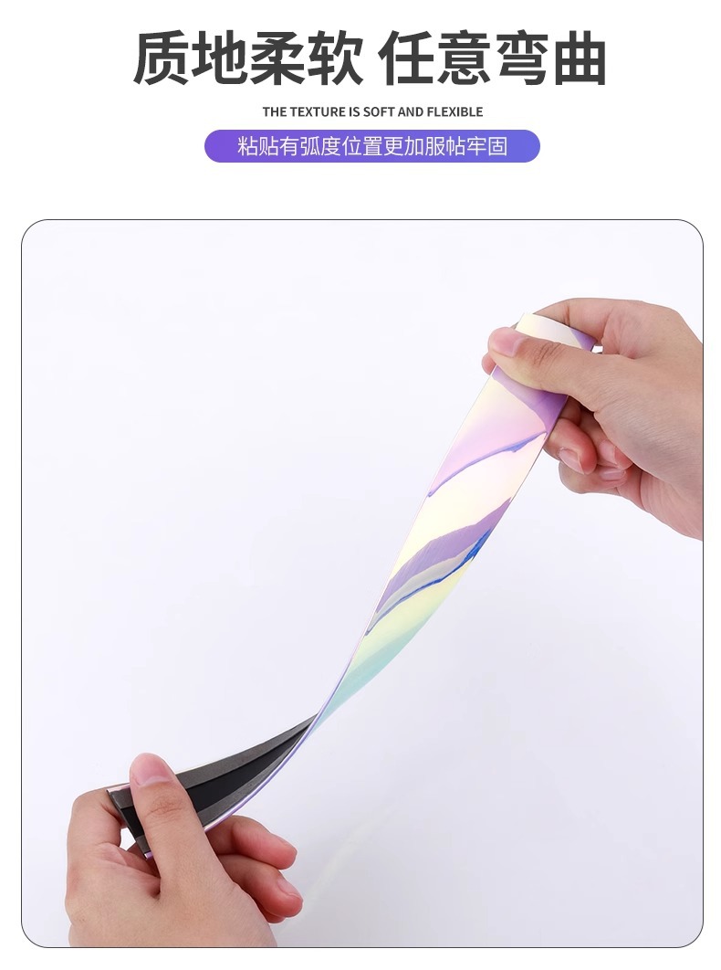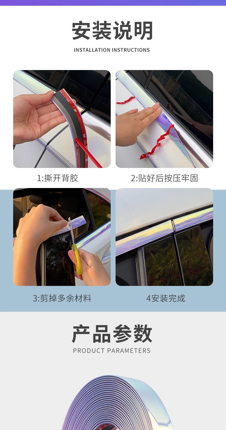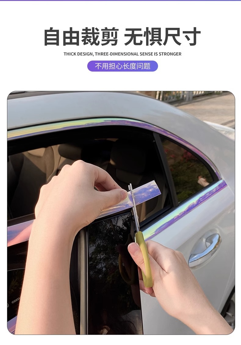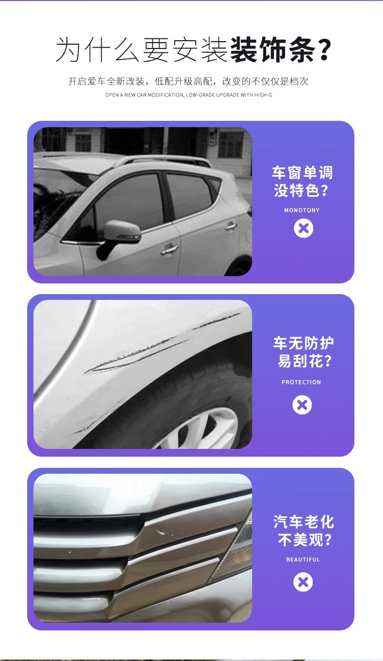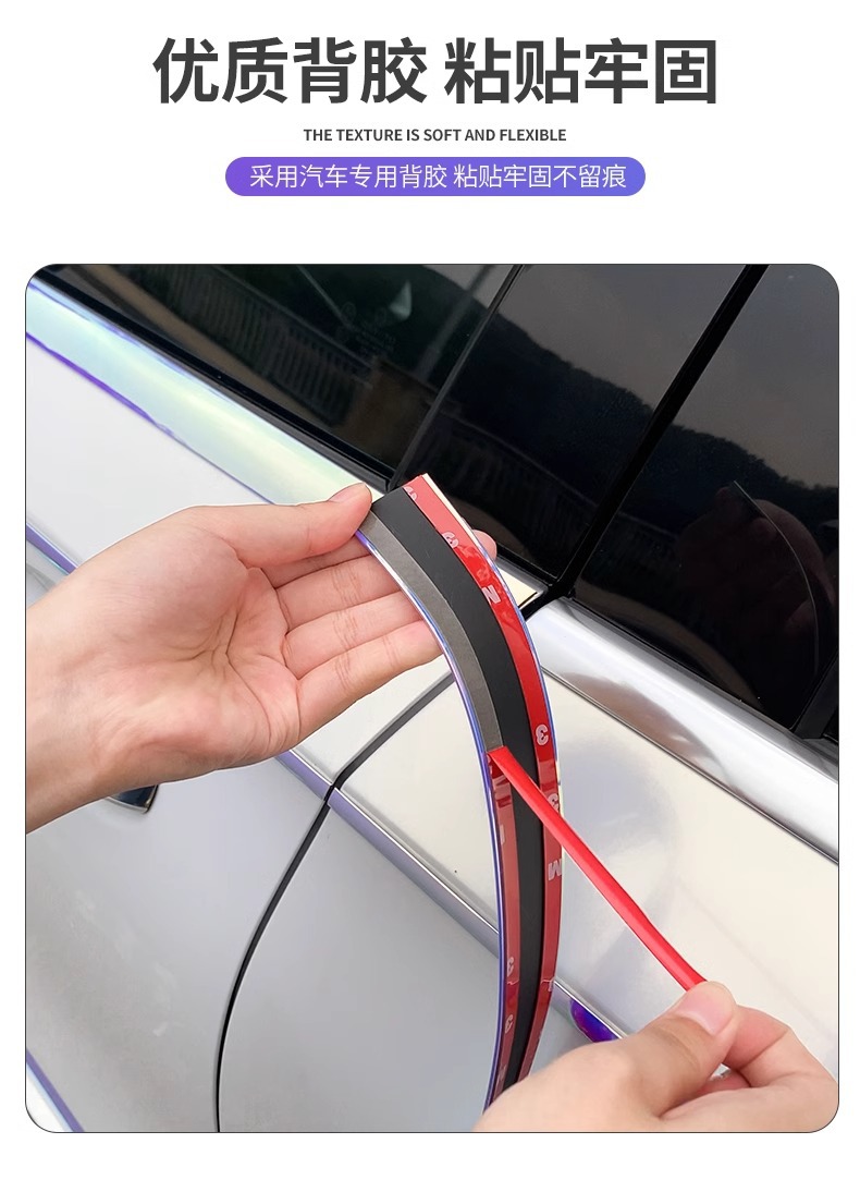清洁你要粘的地方不能有灰尘或水迹油迹等,撕开背胶,用贴上后用力压上10秒这样,此装饰条贴于汽车上任何一个部位圴可,。起装饰作用,让你的爱车与众不同。2-3天内不要洗车沾水、避免暴晒、冬天需要热风枪轻烤贴。