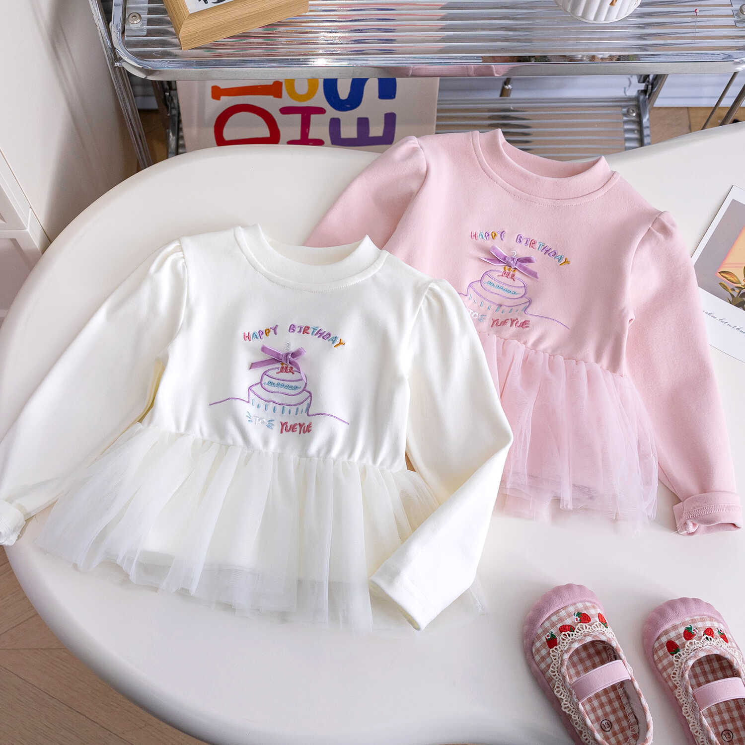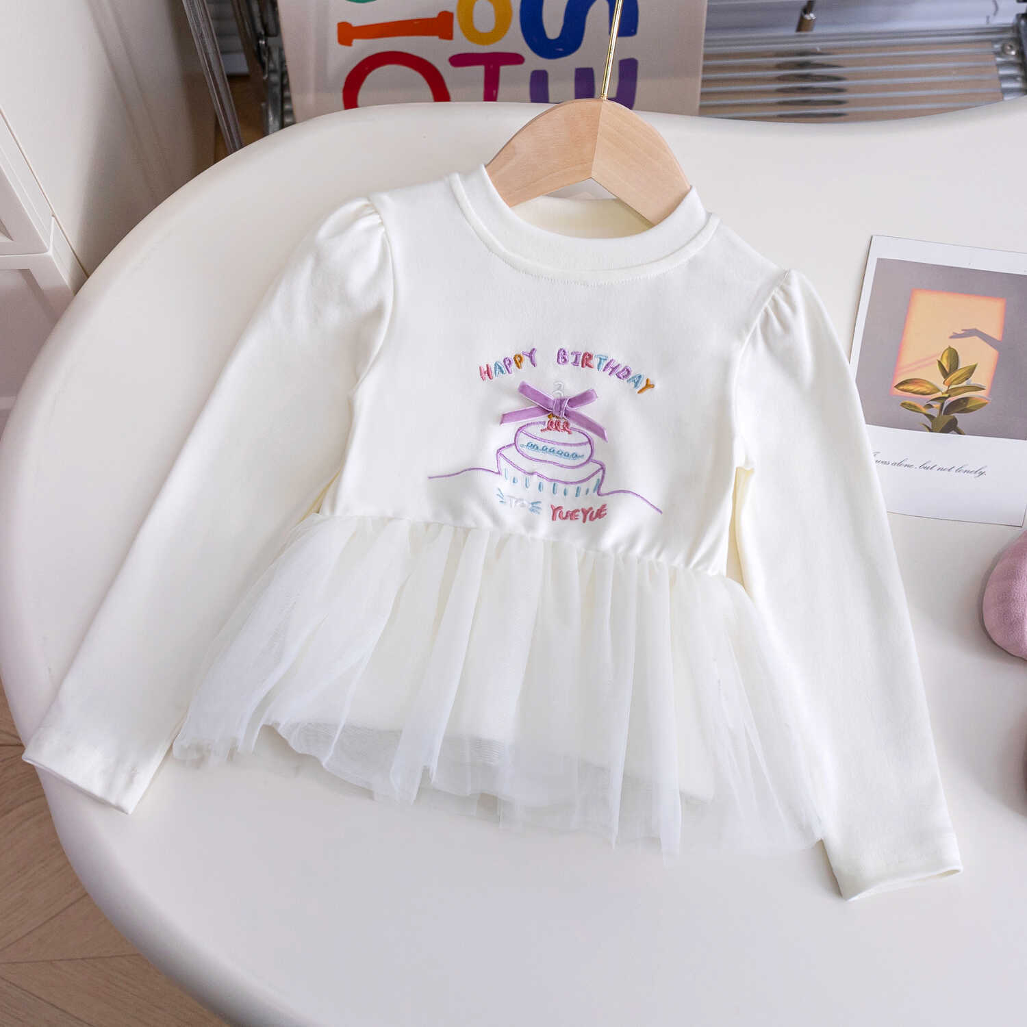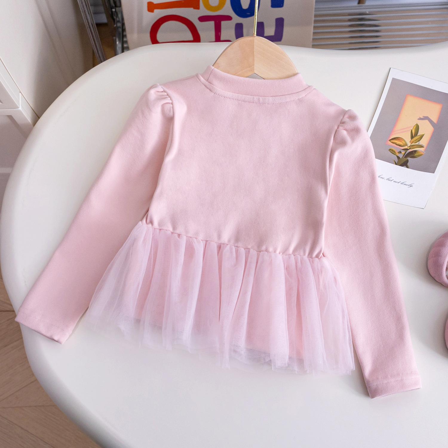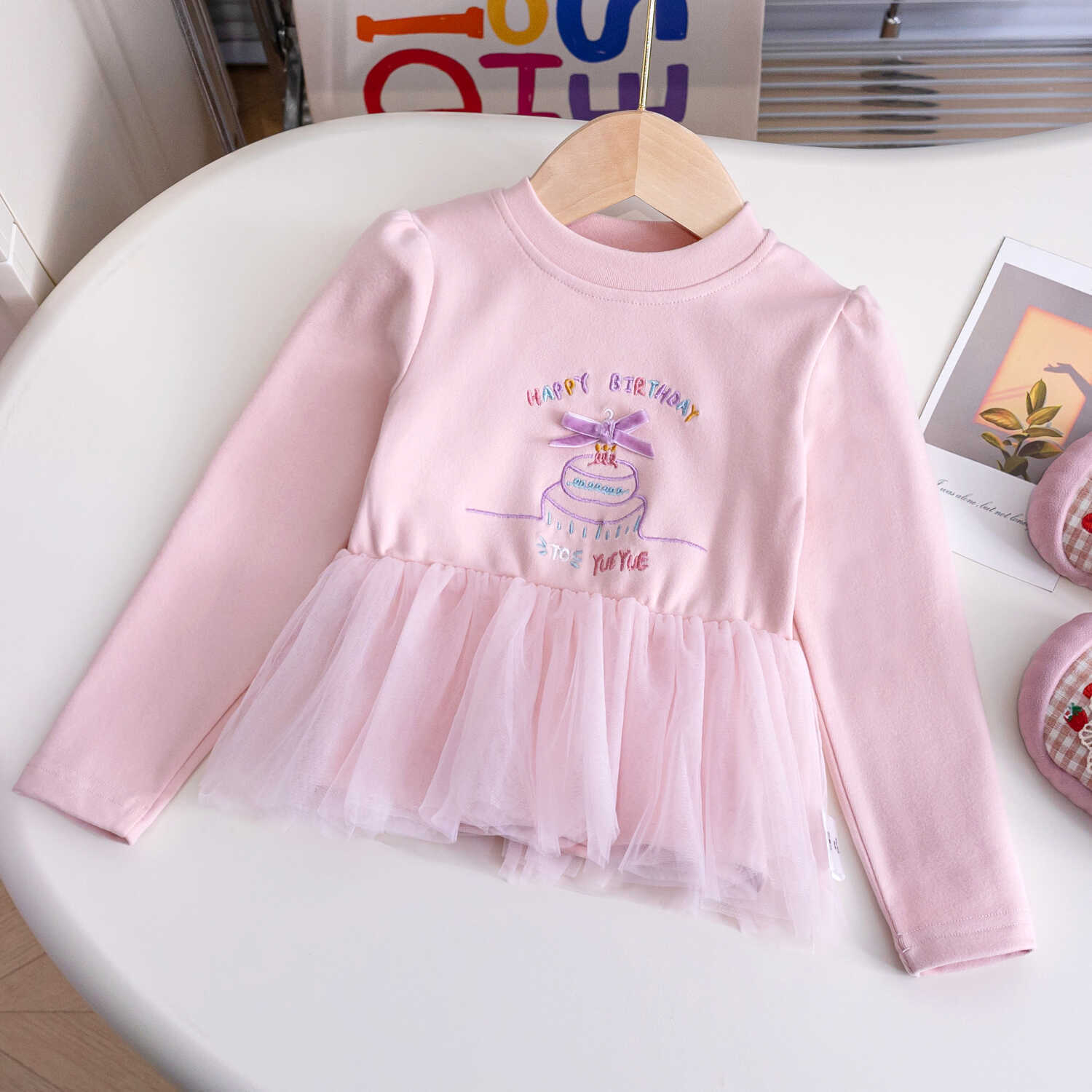 여아 2025 공주 스웨트셔츠 메쉬 밑단 세련된 가을 긴팔 상의 유아용 유치원 봄 가을 의류스토어 가기