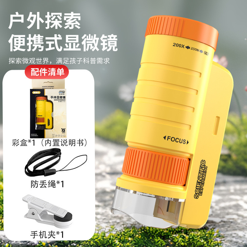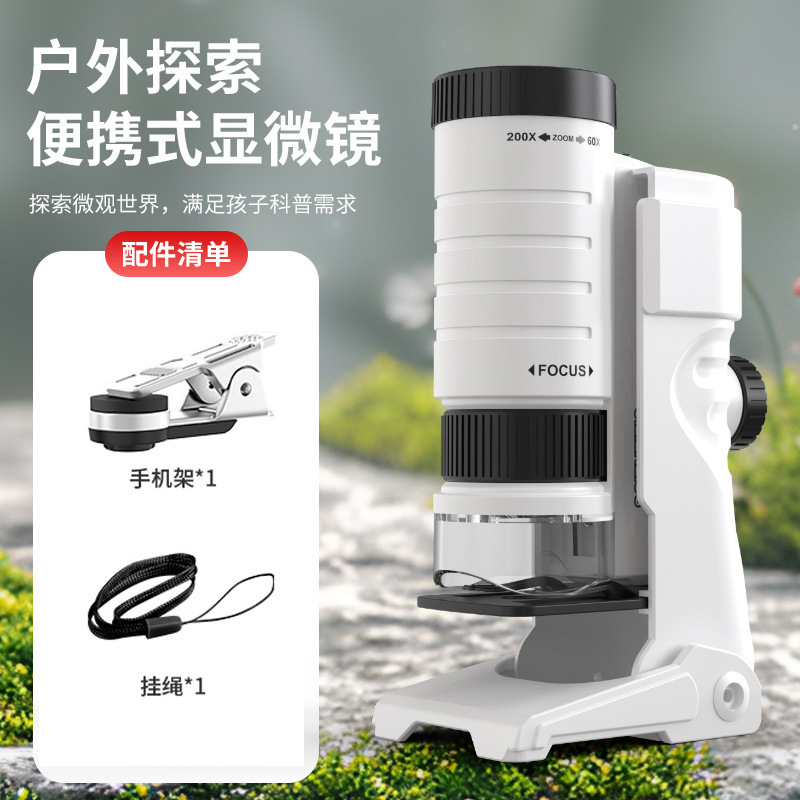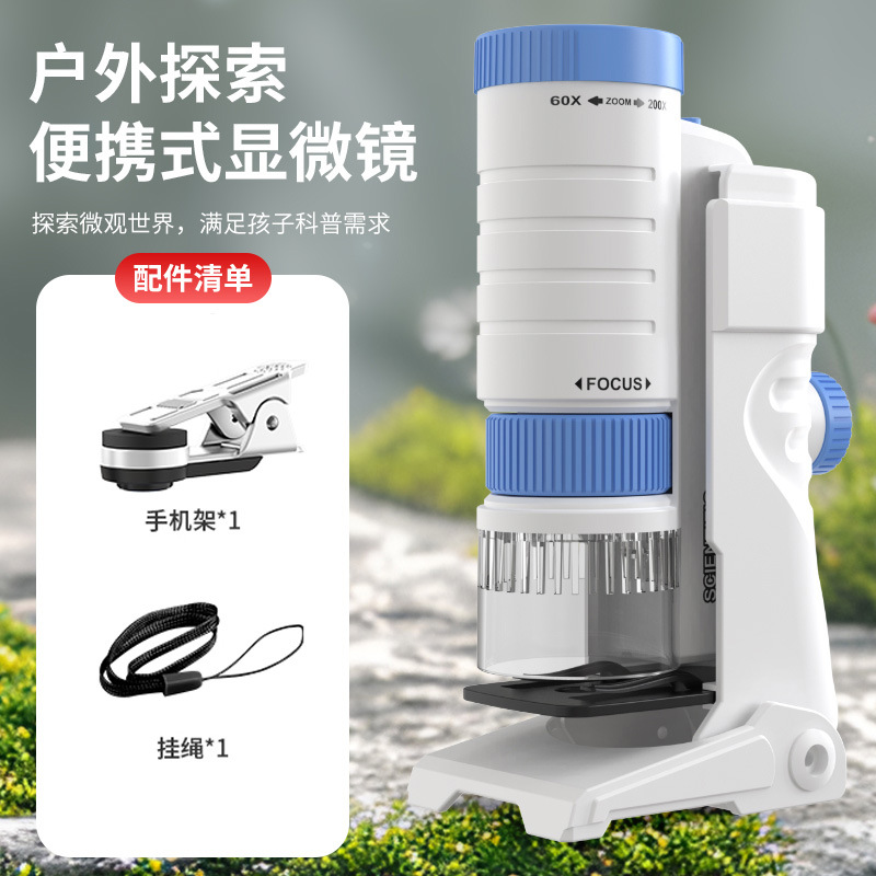 초등학생을위한 과학 및 교육 교육 장난감을 세트 어린이 휴대용 휴대용 휴대용 60X-200X 현미경 과학 실험