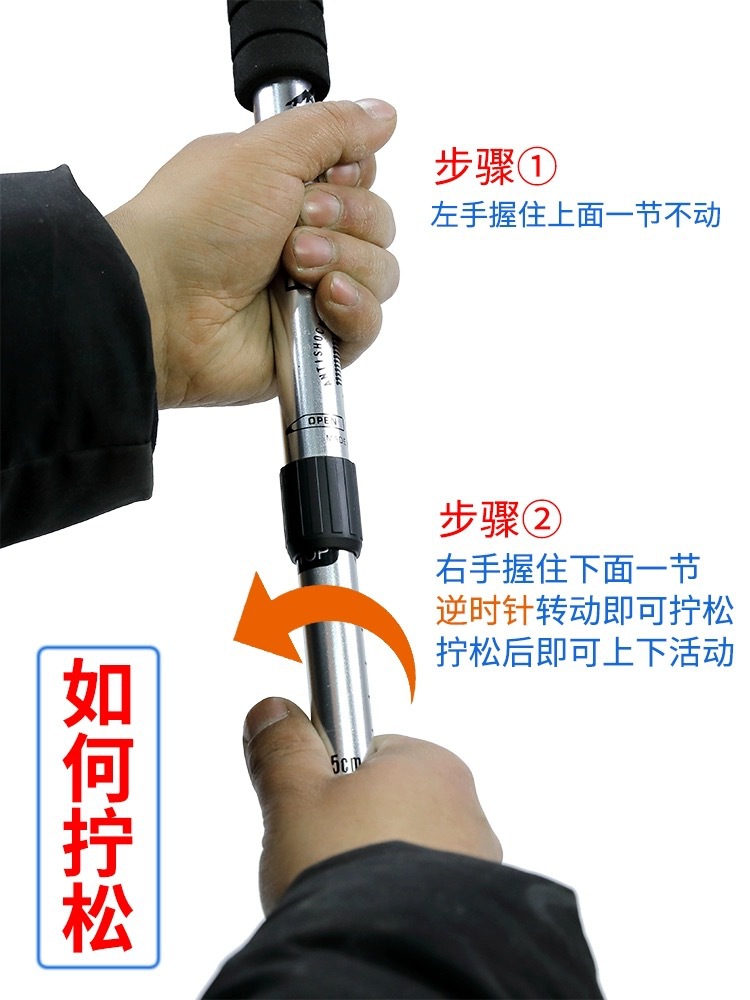 노인을위한 야외 알루미늄 합금 망원경 등산 스틱 하이킹 스틱 미끄럼 방지 충격 흡수 스틱 제조 업체 도매스토어 가기