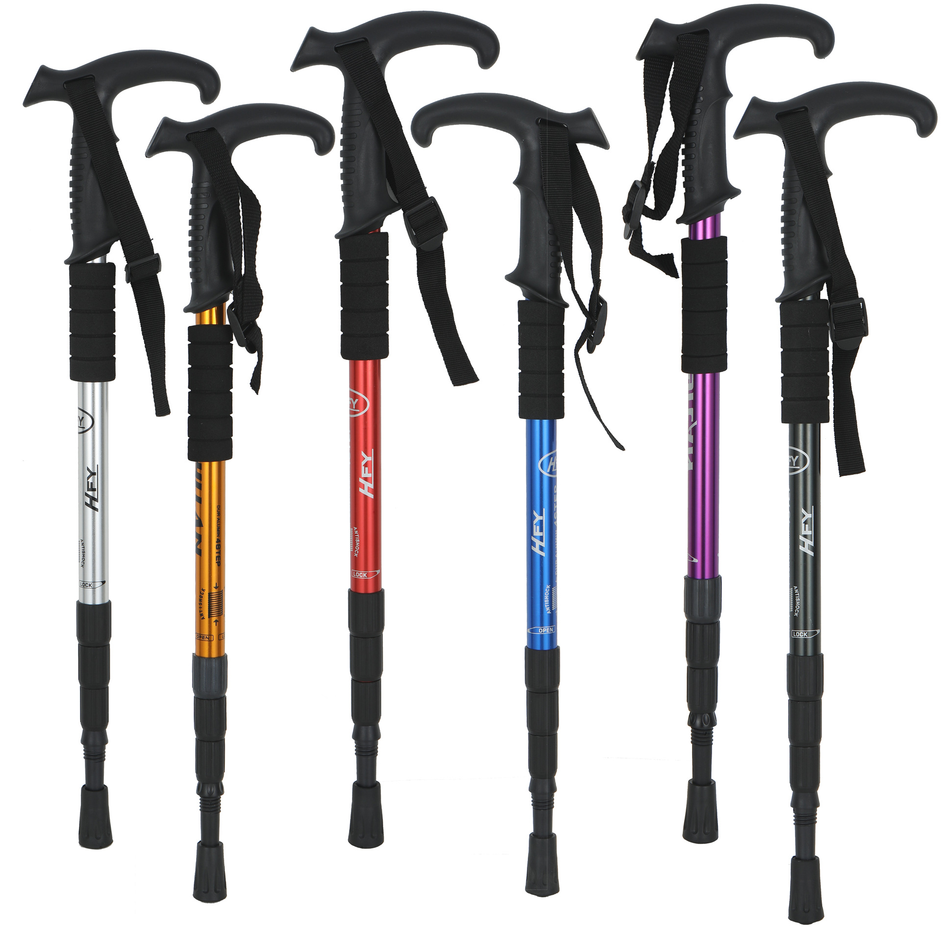 노인을위한 야외 알루미늄 합금 망원경 등산 스틱 하이킹 스틱 미끄럼 방지 충격 흡수 스틱 제조 업체 도매