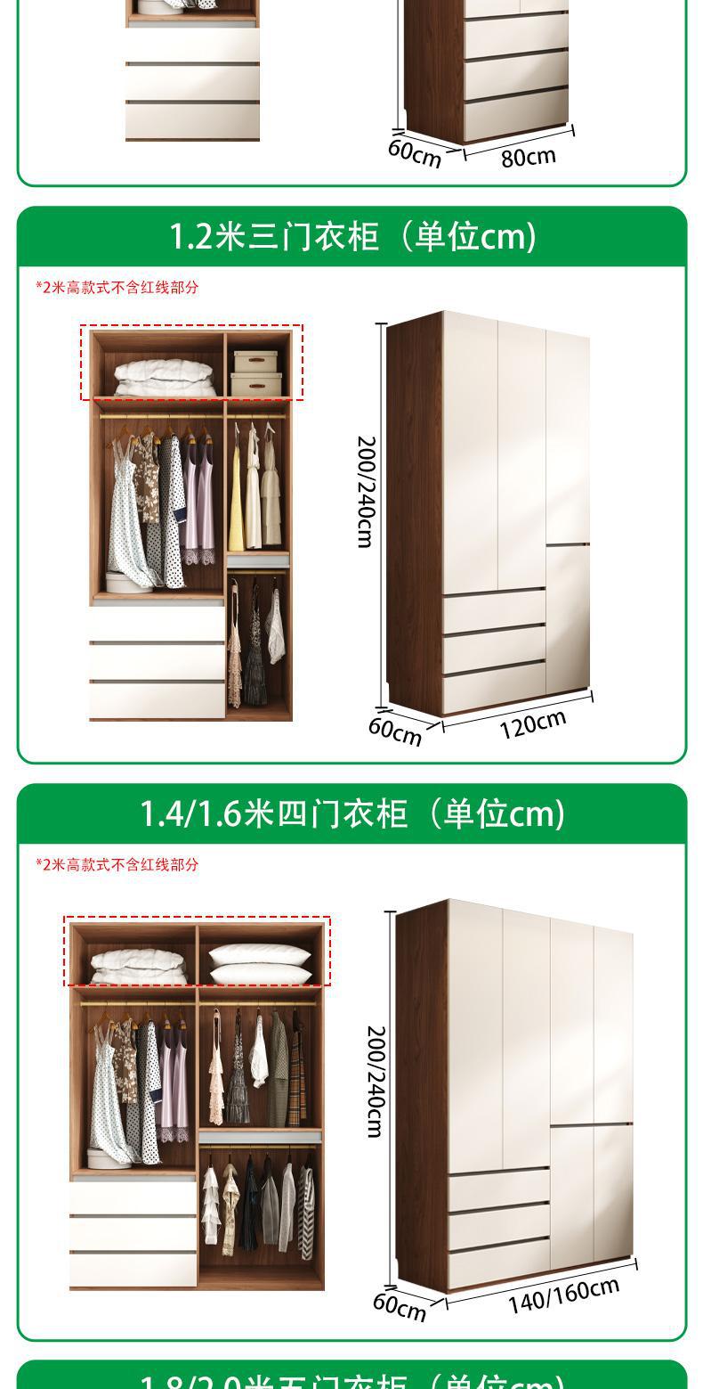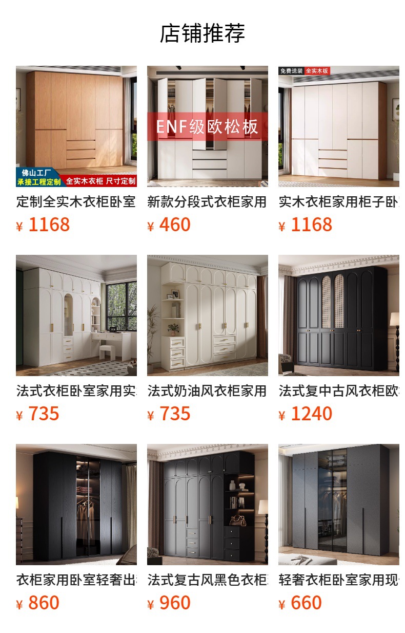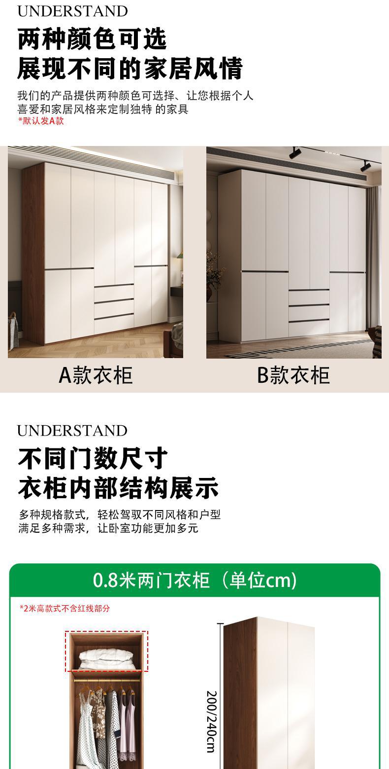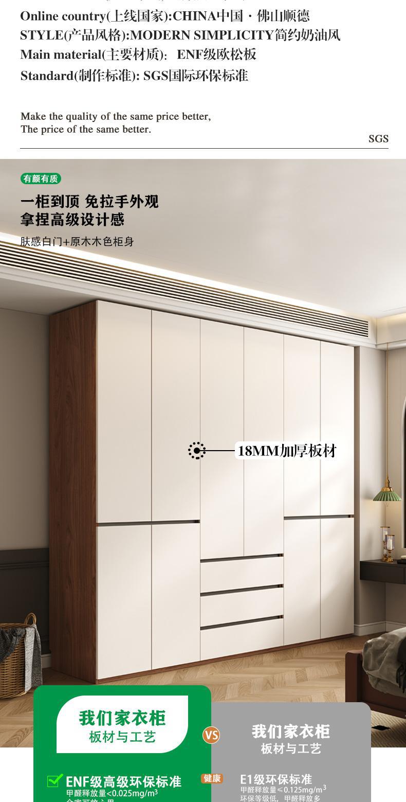 세분화 된 옷장 침실 홈 ENF 등급 유럽 소나무 보드 플랫 도어 완성 된 대형 캐비닛 현대 간단한 작은 아파트스토어 가기