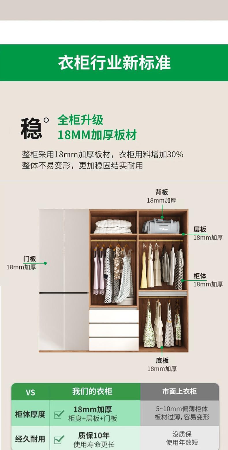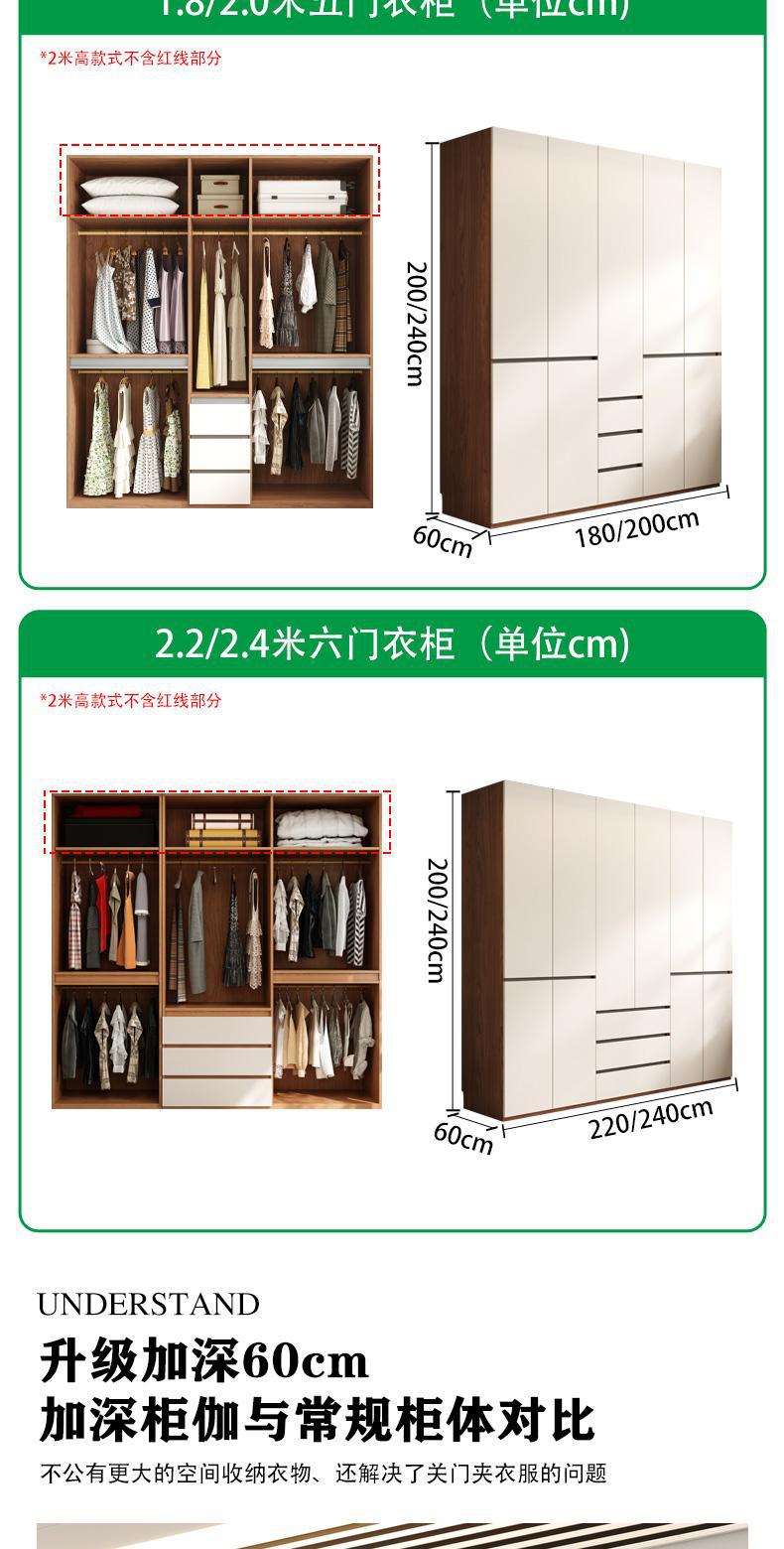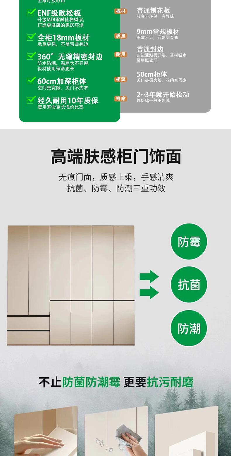 세분화 된 옷장 침실 홈 ENF 등급 유럽 소나무 보드 플랫 도어 완성 된 대형 캐비닛 현대 간단한 작은 아파트스토어 가기