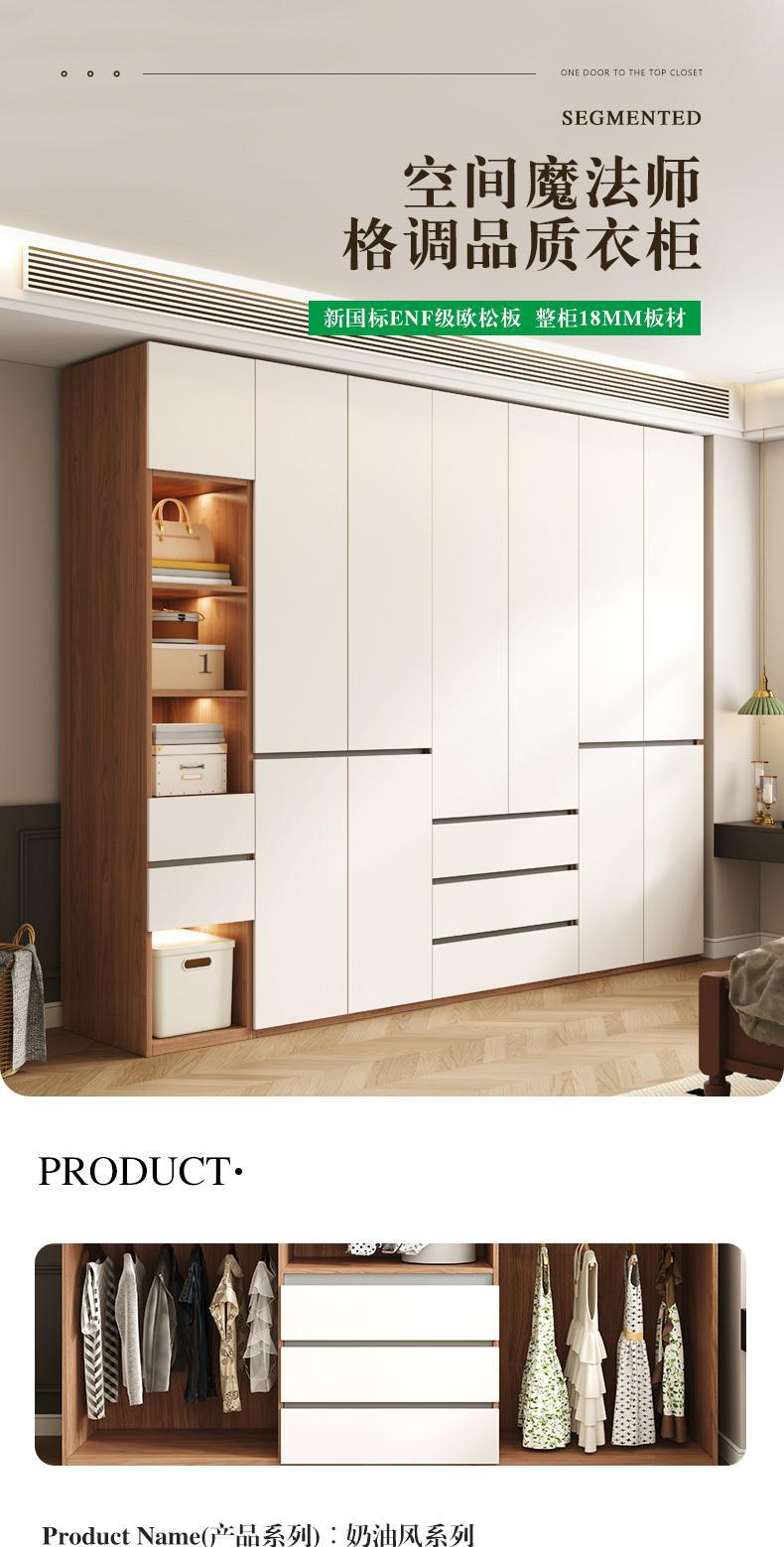 세분화 된 옷장 침실 홈 ENF 등급 유럽 소나무 보드 플랫 도어 완성 된 대형 캐비닛 현대 간단한 작은 아파트