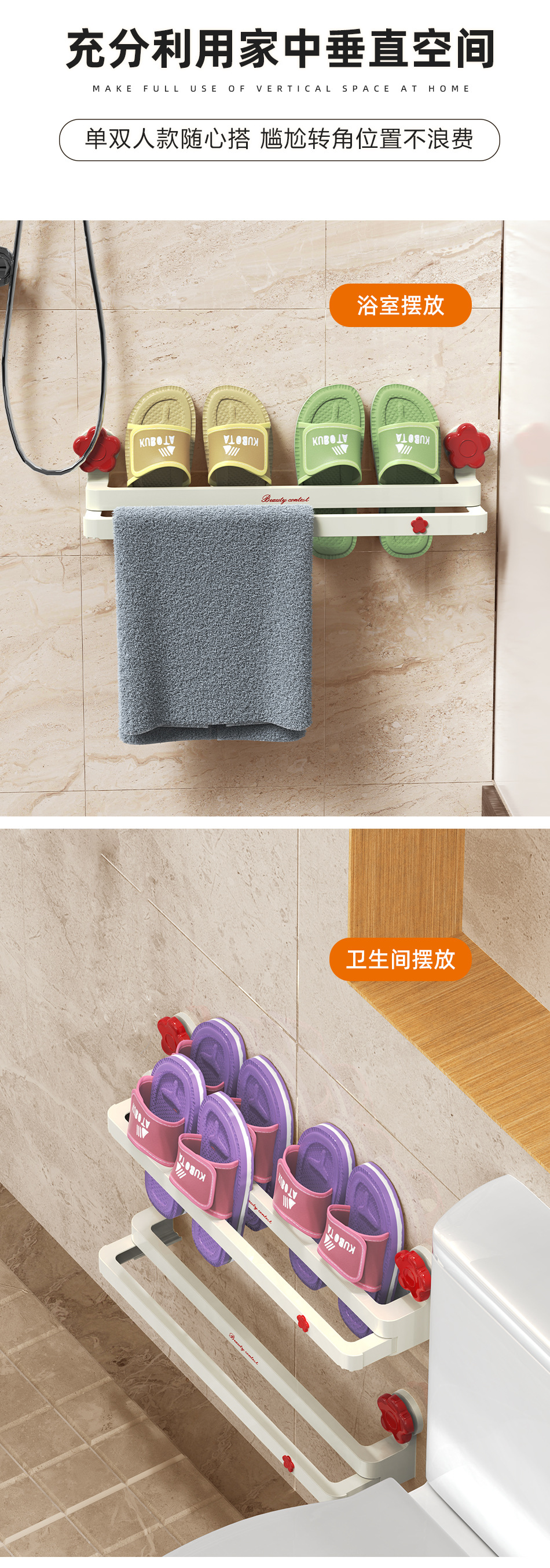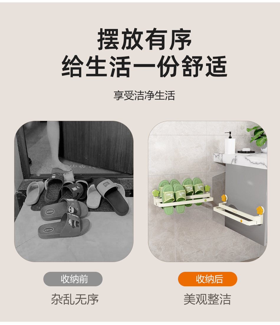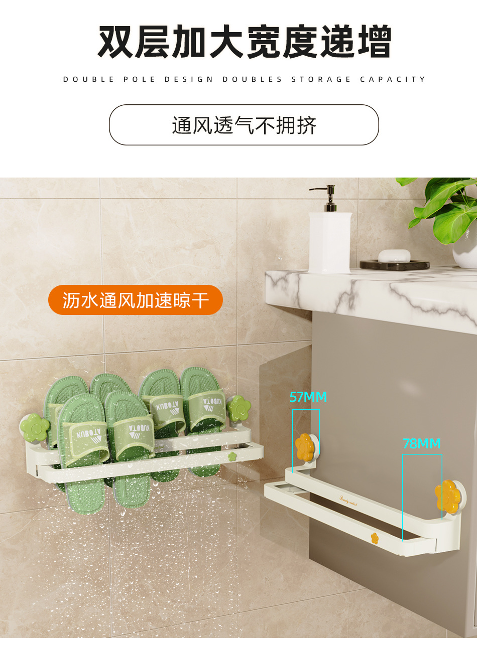 흡입 컵 꽃 개폐식 슬리퍼 랙 욕실 구멍이 뚫린 신발 보관 유물 화장실 슬리퍼 행거 배수 랙스토어 가기